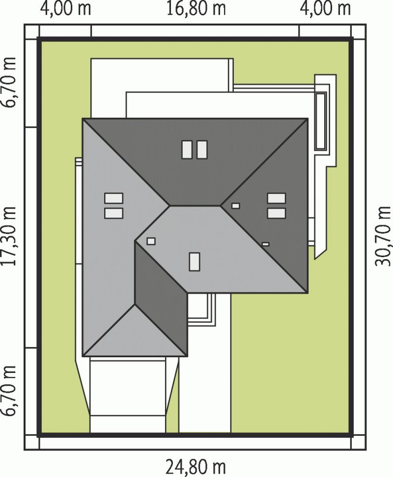 - Min. wymiary działki 24.30x25.30 m