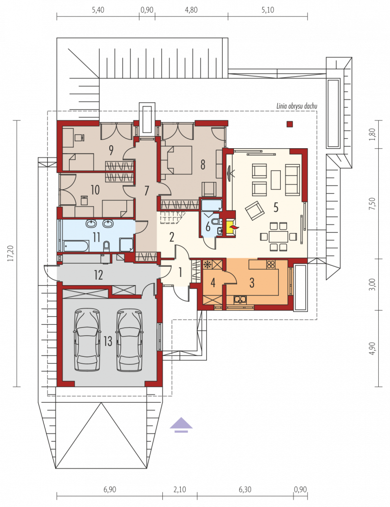 Marcel II G2 to dom, w którym świetnie odnajdą się miłośnicy nowoczesnego designu. Atrakcyjna forma w parze z modną kompozycją elewacji prezentuje się efektownie i szlachetnie. We wnętrzu króluje przestrzeń, swoboda i naturalne światło, które dzięki dużym przeszkleniom oplata niemal każdy zakątek strefy dziennej. Dużym atutem projektu jest poddasze do późniejszej adaptacji, które w miarę upływu lat, a tym samym zmieniających się potrzeb rodziny, elastycznie dopasuje się do rytmu życia domowników – można na nim urządzić np. osobne pokoje dla dzieci.