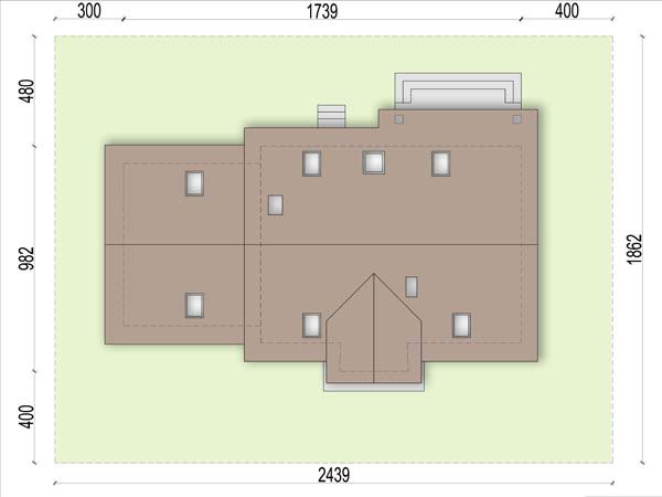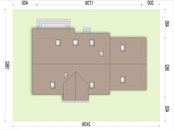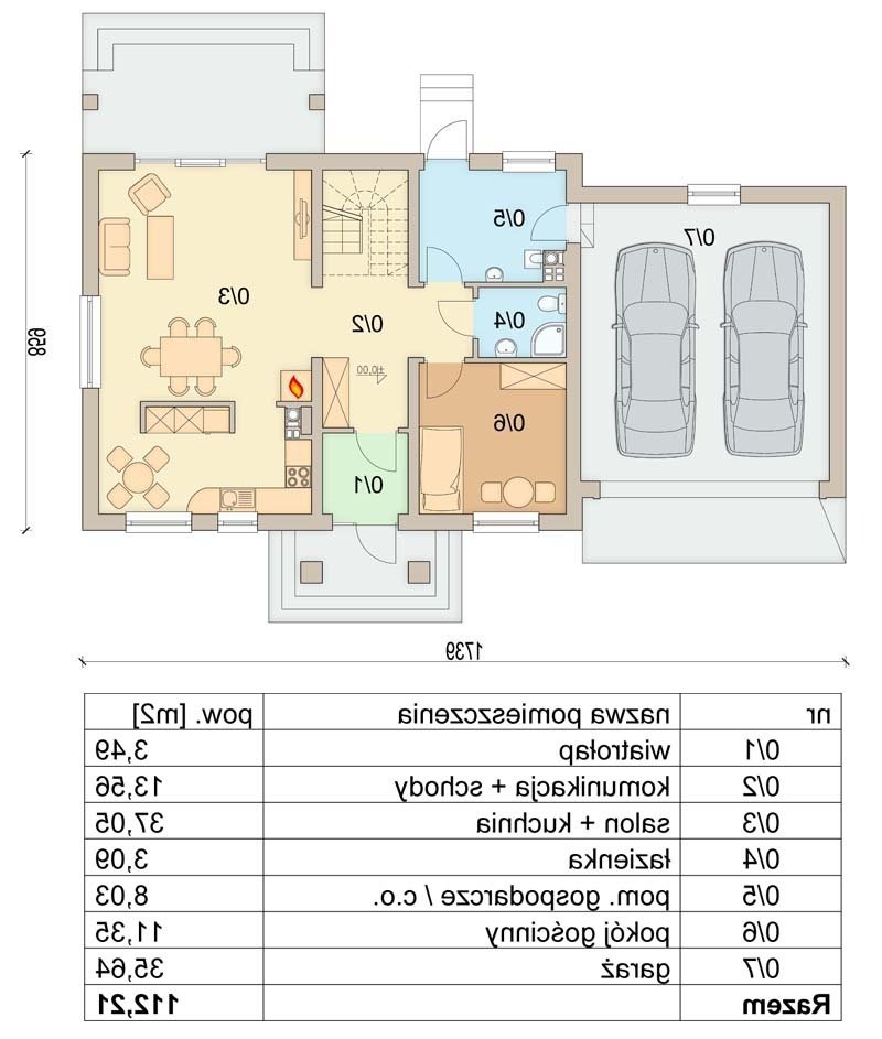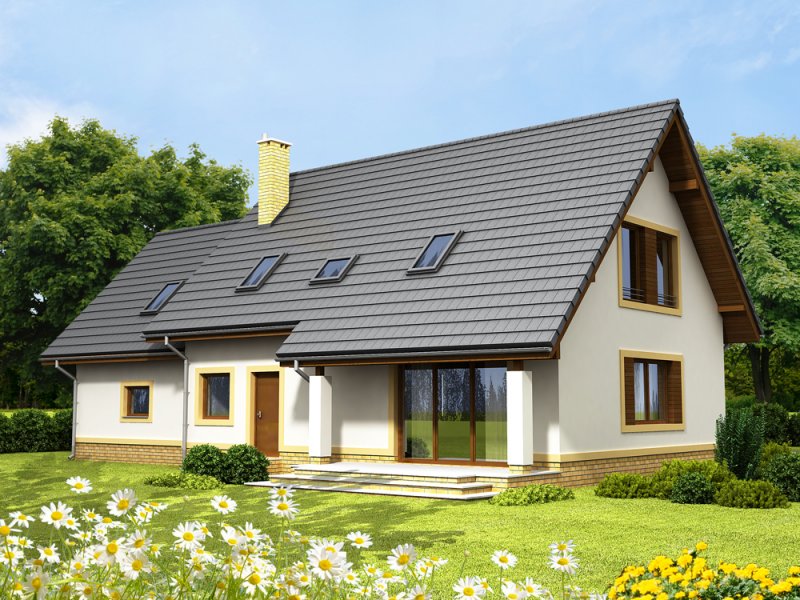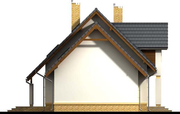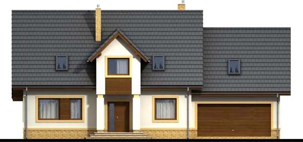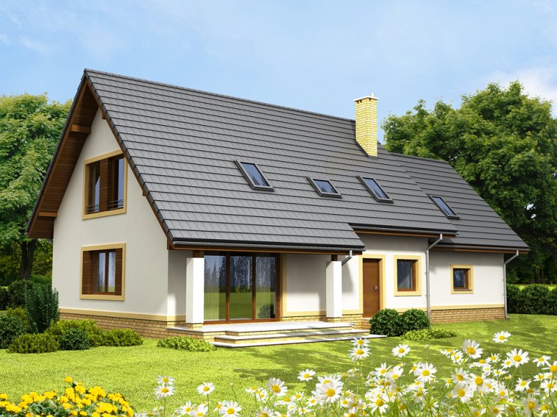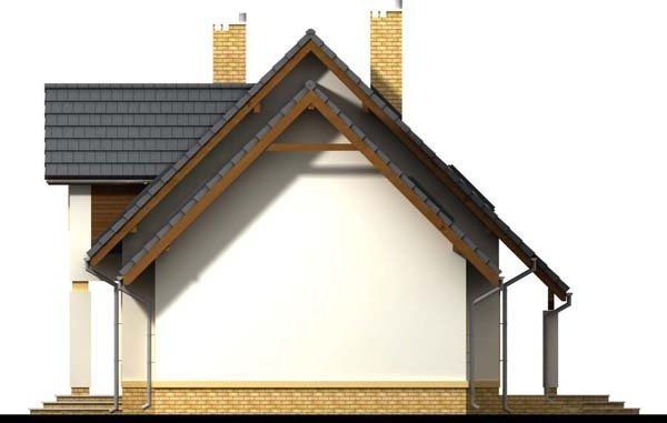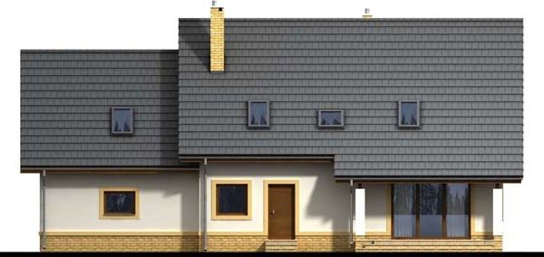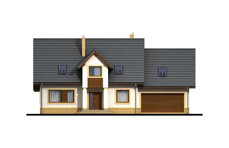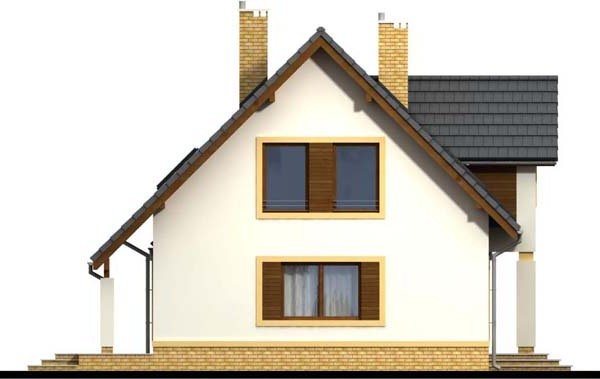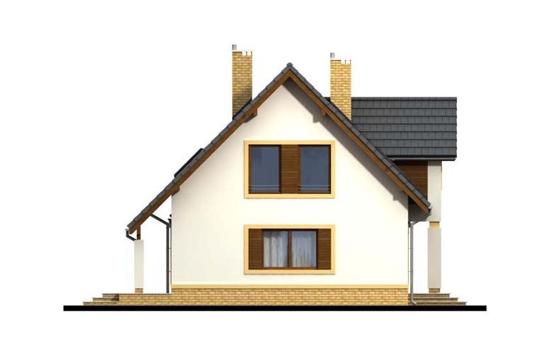 Otwarty salon i jadalnia połączona z kuchnią, stworzą komfortową przestrzeń dla życia rodzinnego i towarzyskiego. Dodatkowo na parterze zlokalizowano pokój gościnny, oraz łazienkę. Dzięki temu poddasze pozostanie strefą wyłącznie dla mieszkańców domu. Niewątpliwym atutem projektu jest łazienka na poddaszu z której dostępna jest pralnia oraz duży strych mogący pełnić funkcję np. suszarni. Nie zapomniano również o pomieszczeniu gospodarczym z wyjściem na ogród, oraz garderobie. Prosta bryła i nieskomplikowana konstrukcja, sprawią że dom będzie tani i łatwy w budowie.