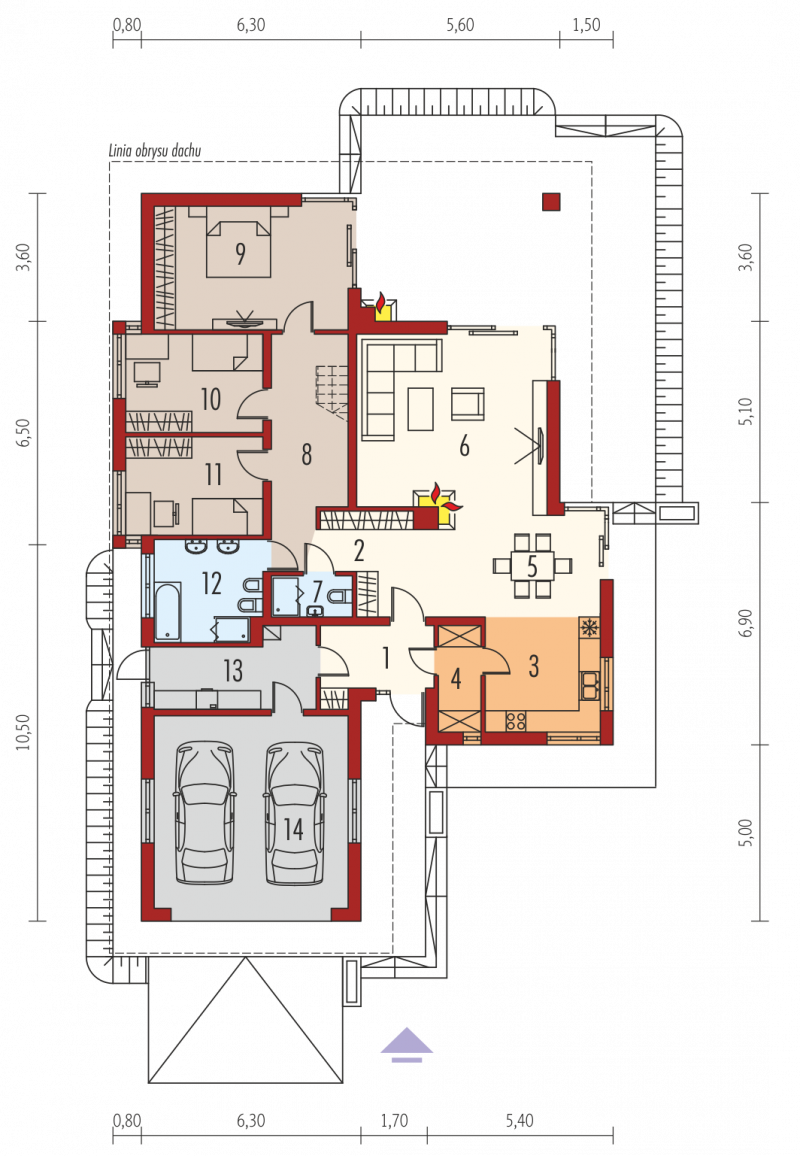 Dach: konstrukcja drewniana, ocieplenie wełna mineralna 30 cm, dachówka ceramiczna Röben