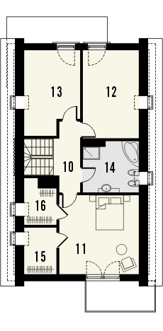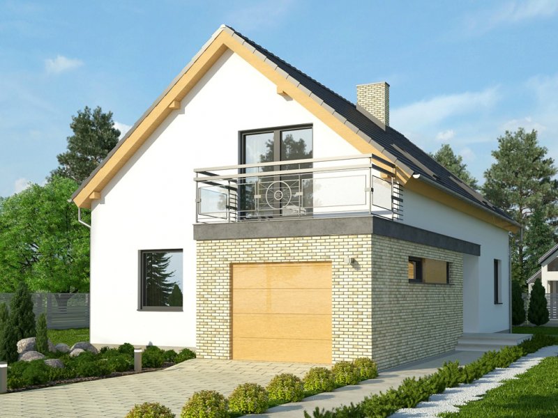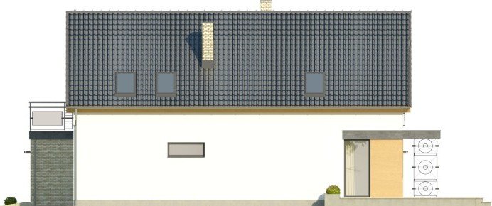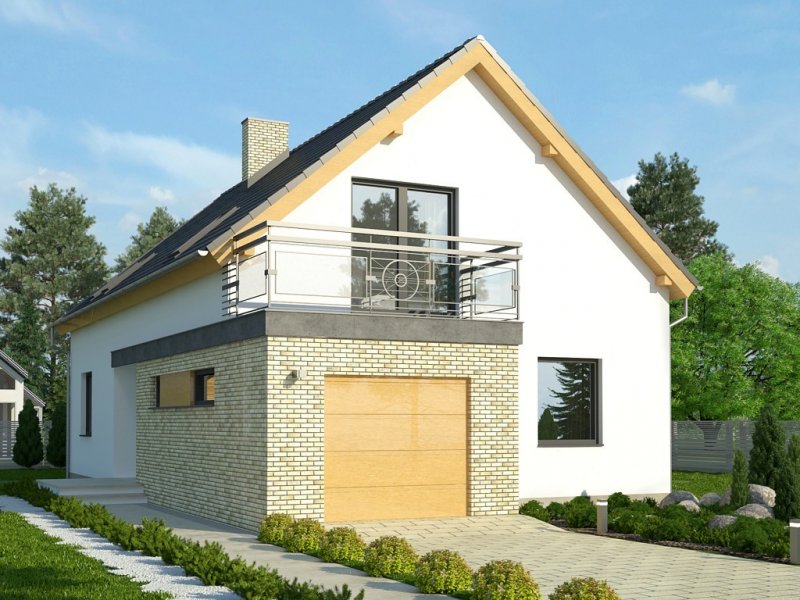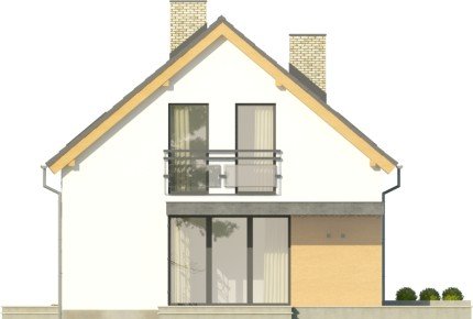 Dom Master to piętrowy, niepodpiwniczony budynek zjednostanowiskowym garażem. Na parterze, oprócz garażu, znajdujesię także salon z otwartą kuchnią, przy której zaprojektowanofunkcjonalną spiżarkę, pozostałe pomieszczenia to dodatkowypokój, łazienka i pomieszczenie gospodarcze. Na poddaszu poddachem stromym ulokowano 3 sypialnie, w tym jedną z dwomagarderobami i wyjściem na taras oraz łazienkę. Dokumentacjadostępna w standardzie, jak i w odbiciu lustrzanym.Ciekawy dom z dachem dwuspadowym.Uwagę zwraca przestronny taras zaprojektowany nad garażem,dostępny z największej sypialni na piętrze. Nietypowakolorystyka, tj. ciemne okna oraz zadaszenia na tle białego tynku,nadają projektowi nowoczesnego charakteru.