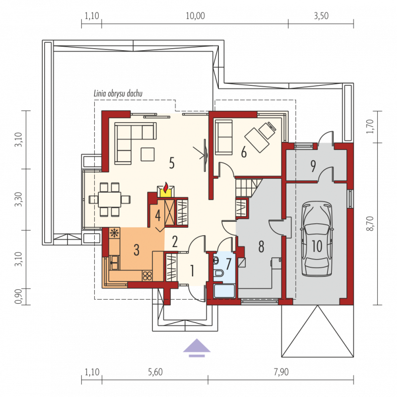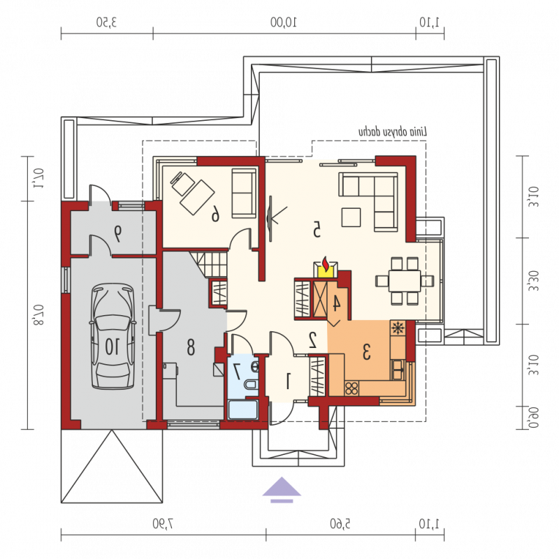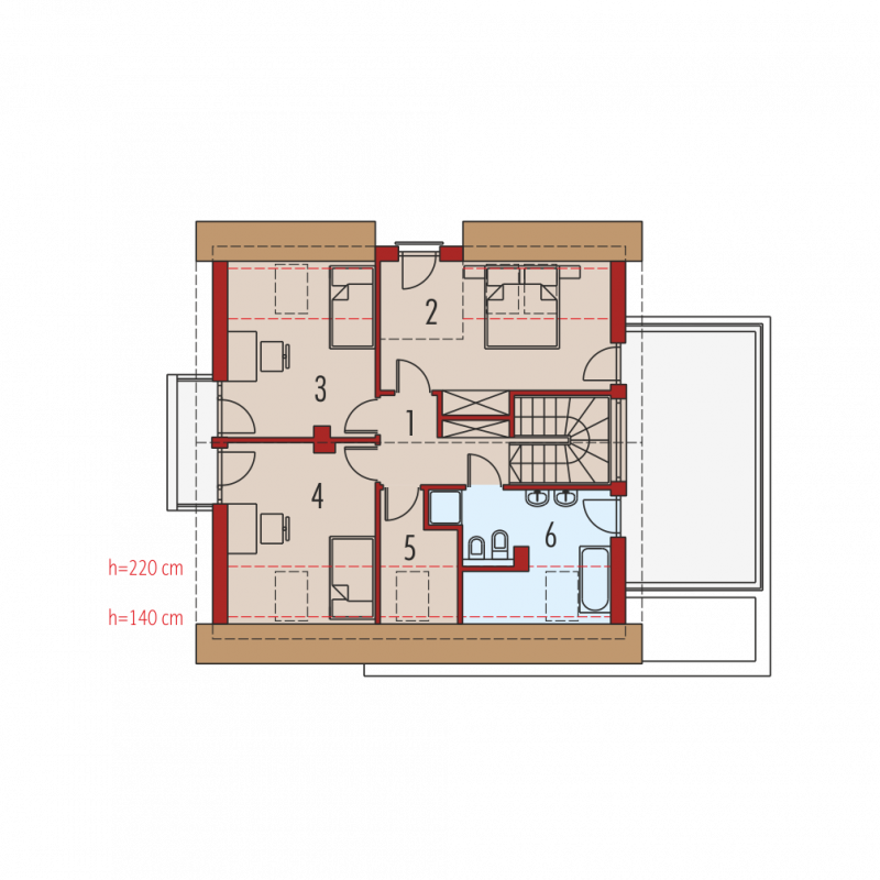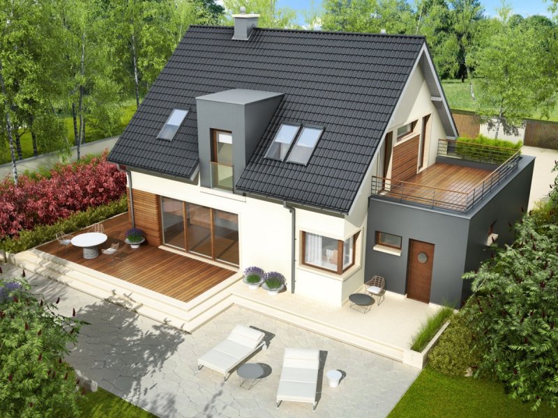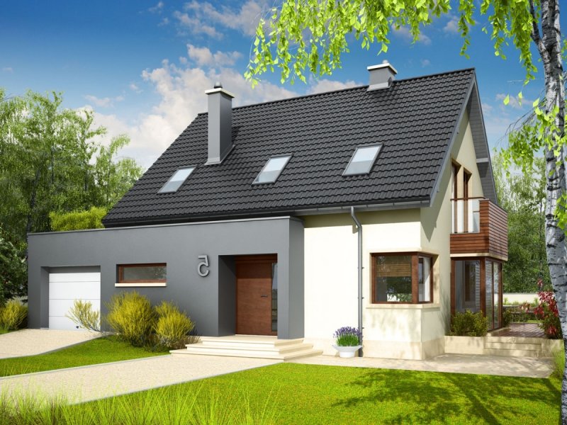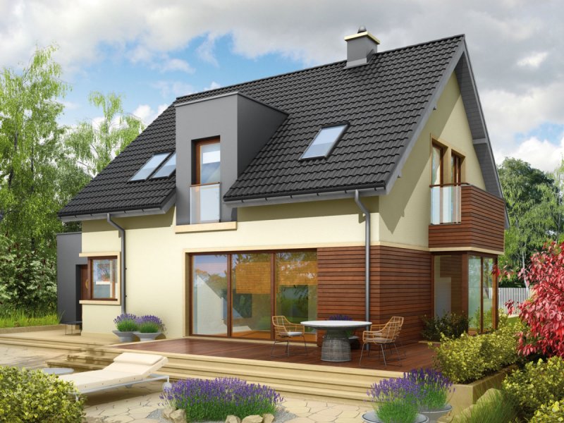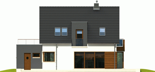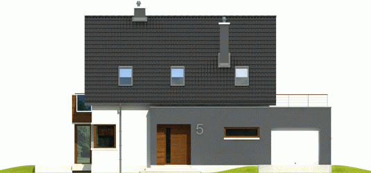 Dom parterowy z poddaszem użytkowym, niepodpiwniczony, z garażem jednostanowiskowym. Przeznaczony dla 3-4-osobowej rodziny. Funkcjonalny układ pomieszczeń pozwala na optymalne wykorzystanie przestrzeni. Strefa dzienna znajduje się na parterze. W jej skład wchodzą: duży, otwarty na jadalnię salon z kominkiem oraz kuchnia z praktyczną spiżarnią. Dodatkowo znajduje się tu gabinet, łazienka oraz obszerne pomieszczenie gospodarcze, z którego dostać się można do garażu. Na poddaszu mieści się strefa nocna z trzema sypialniami, łazienką oraz garderobą. Dwie mniejsze sypialnie posiadają dostęp do balkonu, z większej można natomiast dostać się na zlokalizowany nad garażem taras. Mati G1 to nowoczesny szyk, otulający przytulne wnętrza. Tradycyjna bryła budynku posiada znamiona nowoczesności, dzięki temu budynek zachwyca wyszukaną elegancją. Czarującą strefą jest salon, gdzie w blasku kominka można cieszyć się ciepłem domowego ogniska. Ciekawym rozwiązaniem jest taras, który stanowi dodatkową nastrojową i inspirującą przestrzeń dla ceniących wygodny odpoczynek. Istnieje możliwość podpiwniczenia budynku.