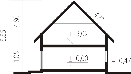 Dom zaprojektowany w technologii murowej ze stropem gęstożebrowym. Schody wewnętrzne drewniane. Dach o konstrukcji drewnianej pokryty dachówką cementową IBF. Elewacje wykończono tynkiem mineralnym i okładziną drewnianą, cokół kamienny. Stolarka okienna drewniana lub PCV.