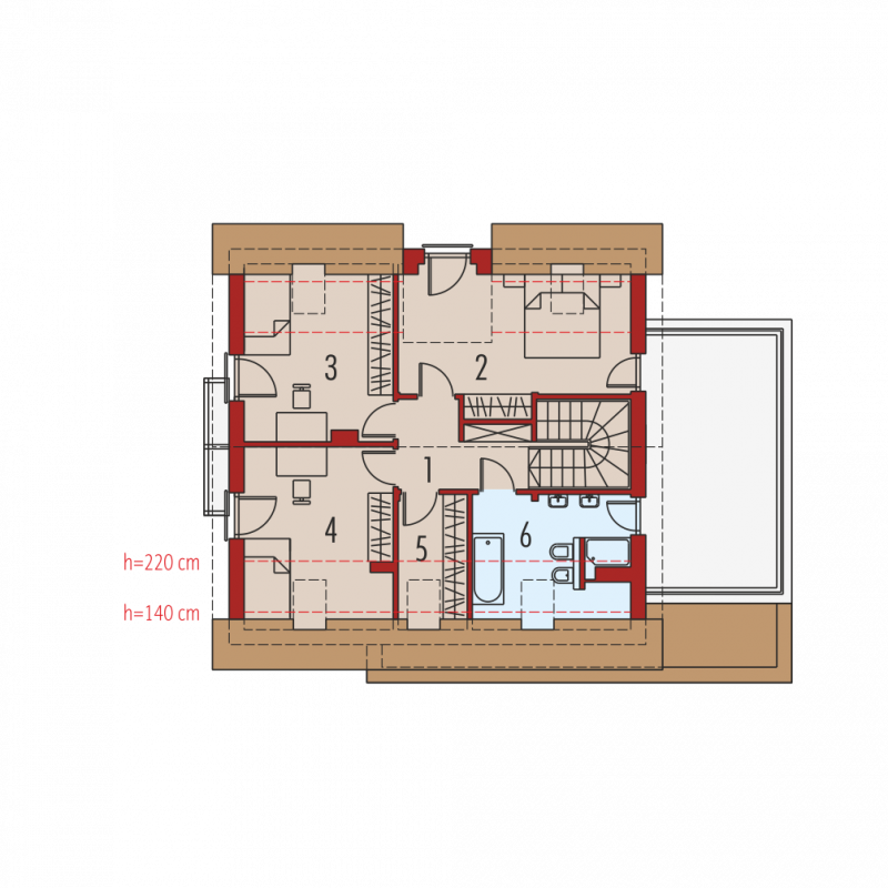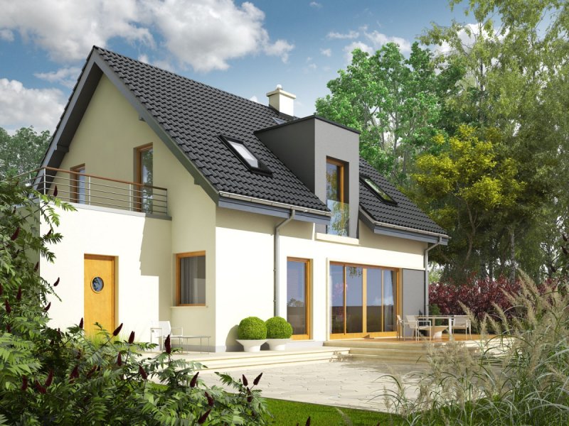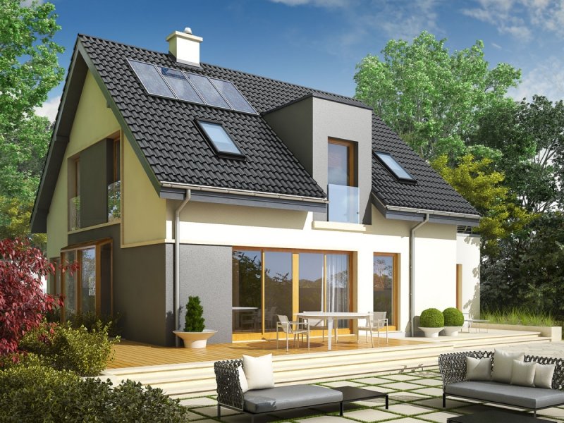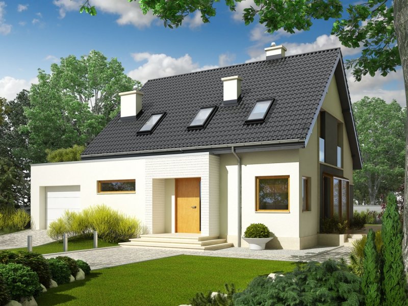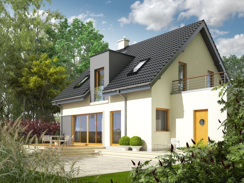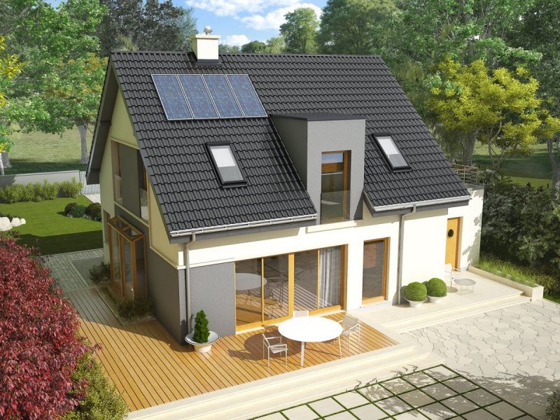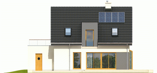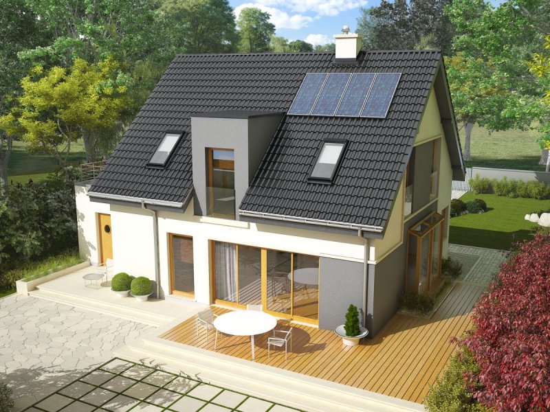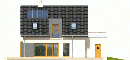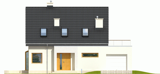 Dom parterowy z poddaszem użytkowym, niepodpiwniczony, z garażem jednostanowiskowym. Przeznaczony dla 4-5-osobowej rodziny. Na parterze zaprojektowano strefę dzienną: salon z kominkiem, jadalnię oraz kuchnię ze spiżarnią. Znalazł się tu również gabinet, łazienka z wygodnym schowkiem i dwa duże pomieszczenia gospodarcze. Strefę nocną zlokalizowano na poddaszu. Tworzą ją trzy sypialnie, osobna garderoba oraz duża łazienka. Z głównej sypialni oraz przyległej do niej łazienki przewidziano wyjście na obszerny taras. Mati II G1 to znakomita propozycja dla miłośników nowoczesnej architektury. Prosta bryła budynku została wzbogacona ciekawymi detalami, które tworzą intrygujący efekt wizualny. Ogromnym atutem domu jest komfortowa strefa dzienna, w sercu której usytuowano przestronny salon z kominkiem. Atrakcyjnym rozwiązaniem jest także obszerny taras, który stanowi dodatkową, nastrojową przestrzeń wypoczynkową. Istnieje możliwość: - podpiwniczenia budynku - zbliźniaczenia - wykonania domu dwulokalowego