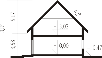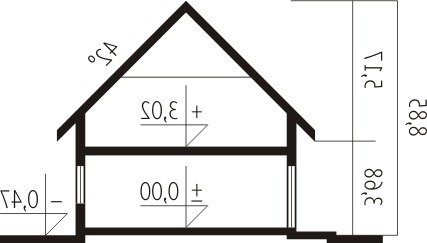 Dom zaprojektowany w technologii murowej ze stropem gęstożebrowym. Schody wewnętrzne drewniane. Dach o konstrukcji drewnianej pokryty dachówką cementową IBF. Elewacje wykończono tynkiem mineralnym i okładziną kamienną. Stolarka okienna drewniana lub PCV.