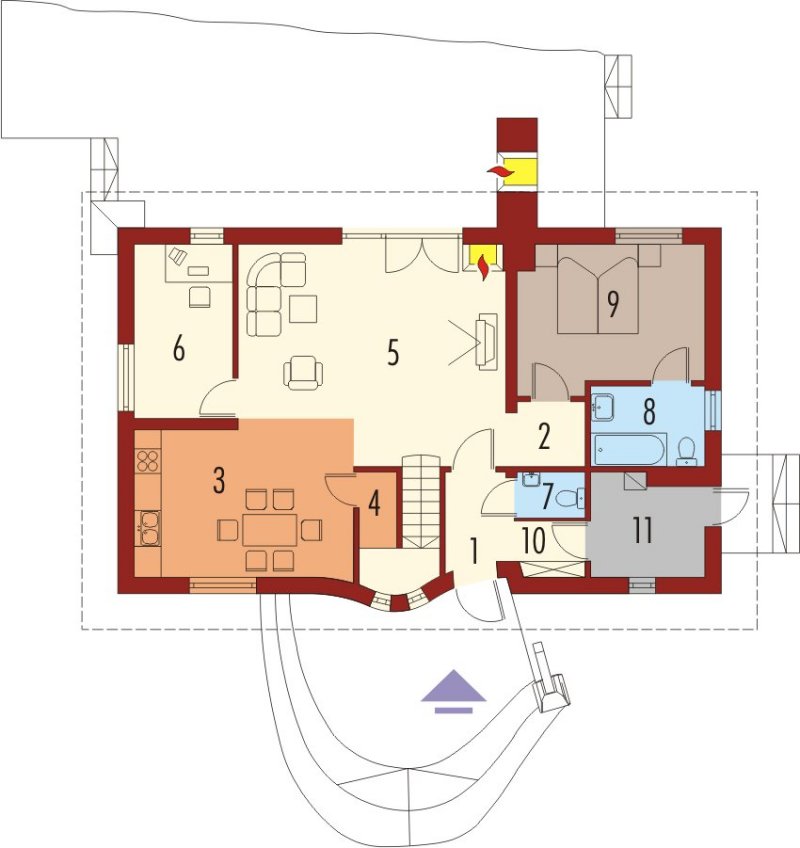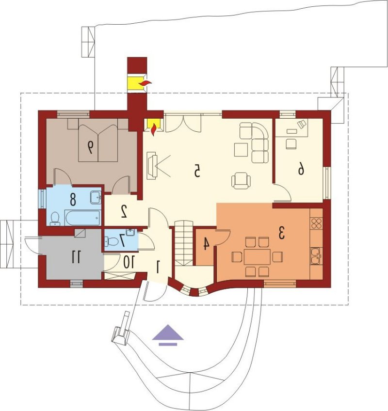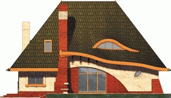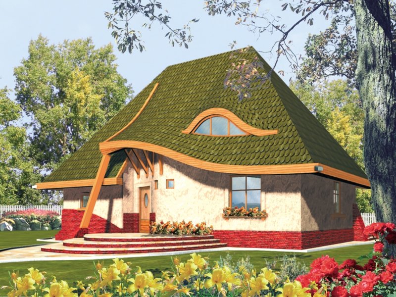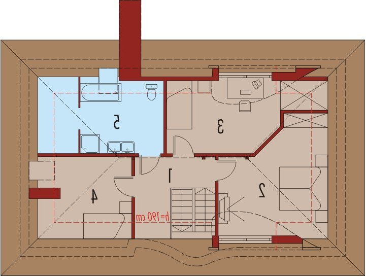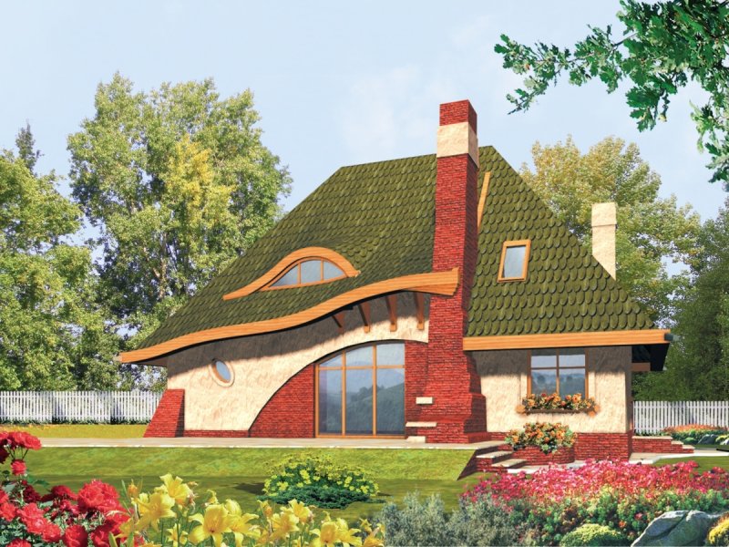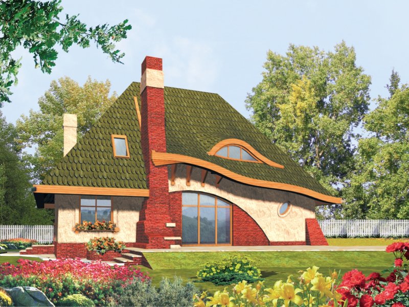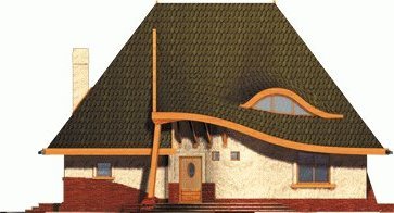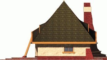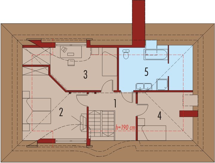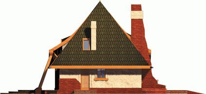 Dom parterowy z użytkowym poddaszem, niepodpiwniczony, przeznaczony dla 4-5-osobowej rodziny. Bryła domu oparta jest na prostokątnym planie a jego niecodzienny charakter uzyskano dzięki rozrzeźbieniu dachu. Na parterze oprócz części dziennej przewidziano sypialnię rodziców z łazienką. Na parterze można powiększyć pokój dzienny likwidując ścianę gabinetu.