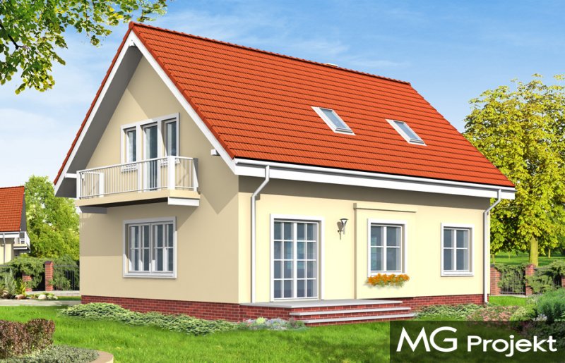 Miodowe Lata jest dealny dla dużej rodziny. Okazały, solidny dom z salonem i pięcioma pokojami zaprojektowano z myślą o 4-6 osobowej rodzinie. Dom jest częściowo podpiwniczony - w piwnicy umieszczono kotłownię. Sylwetka domu prosta, bezpretensjonalna, ozdobiona dużym frontonem na słupach nad wejściem. Na poddaszu można wygospodarować dodatkowy pokój z dużego holu, lub urządzić tam bawialnię dla dzieci. Sypialnia rodziców ma własną garderobę i balkon. Projekt dostępny jest w odbiciu lustrzanym.