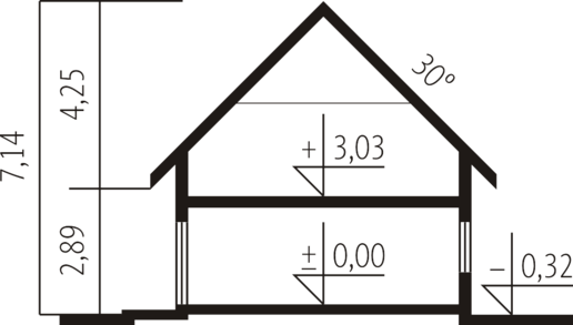 - Kąt nachylenia dachu 30.00°