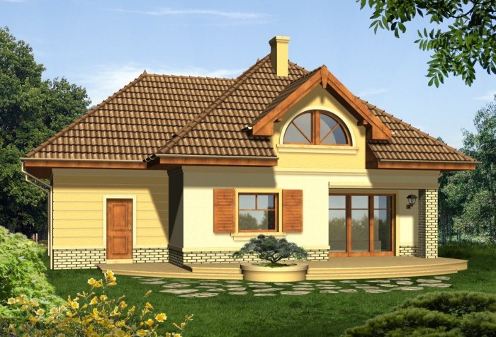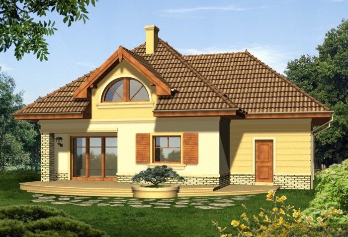 Ściany budynku zaprojektowano z betonu komórkowego docieplone od zewnątrz lub w innej technologii w ramach adaptacji. Strop gęstożebrowy, więźba drewniana, pokrycie dachówką ceramiczną lub cementową. Inne pokrycia w ramach adaptacji. Elewacje tynkowane, cokoły tynkowane lub okładane płytką klinkierową.