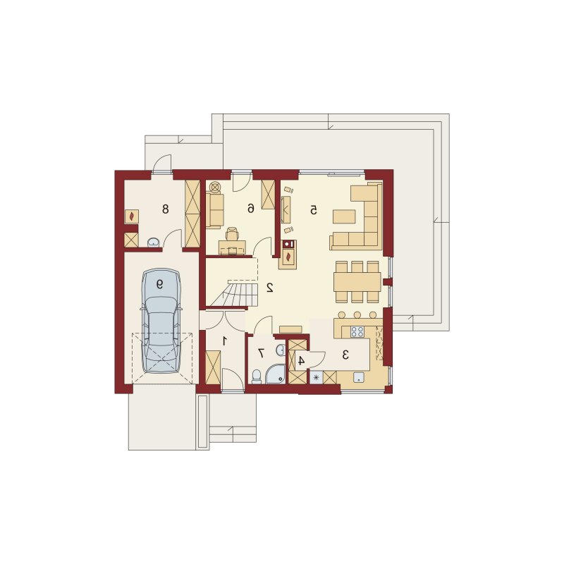 Morfeusz PS został zaprojektowany dla 4-5 osobowej rodziny. Zwarta bryła domu korzystnie wpływa na energooszczędność oraz możliwość realizacji na niewielkich działkach, mieszcząc przy tym funkcjonalne i elastyczne wnętrze: kuchnia może zostać otwarta lub zamknięta wedle uznania, a gabinet na parterze pełnić rolę pokoju gościnnego lub dodatkowej sypialni - zwłaszcza dzięki usytuowaniu łazienki nieopodal. Duże pomieszczenie gospodarcze umożliwia instalację pieca na paliwo stałe lub po prostu zapewnia zapas miejsca do przechowywania. Strefa nocna, usytuowana na poddaszu, składa się z trzech przestronnych sypialni i łazienki, dwóch garderób oraz pralni możliwej do zaaranżowania jako łazienka dostępna z głównej sypialni.