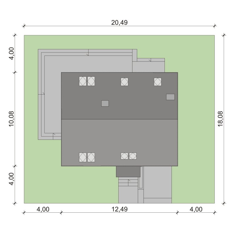 - Min. wymiary działki 20.49x18.08 m