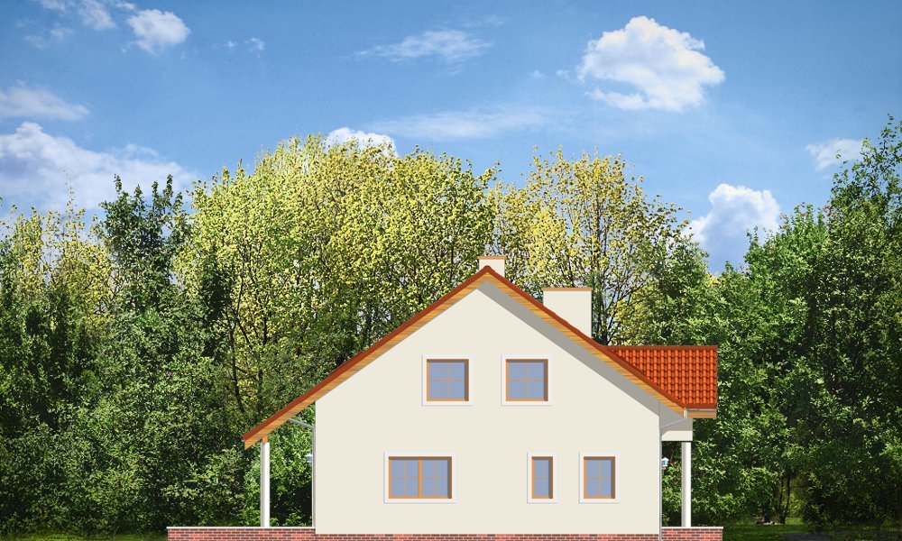 Na Wspólnej to dom jednorodzinny przeznaczony dla trzypokoleniowej rodziny, z odrębnym mieszkaniem dla dziadków lub dorosłych dzieci. Bryła domu jest prosta - rzut parteru o kształcie prostokąta przekryty poddaszem i dachem dwuspadowym. Wejście z domu zaakcentowano frontonem na dwóch kolumnach. Od strony ogrodu przewidziano zadaszony taras. Na parterze zaprojektowano wspólny dla obu mieszkań duży przedsionek z wejściem do kotłowni. W części odrębnego mieszkania znajdują się pokój dzienny z aneksem kuchennym, łazienka i sypialnia. W pozostałej części parteru: pokój dzienny z jadalnią i wygodnymi schodami, oraz kuchnia ze spiżarką. Na poddaszu umieszczono trzy sypialnie z dwiema łazienkami. Jedna z sypialni to oddzielna część państwa domu z ich łazienką i garderobą. Dom można również zaadaptować likwidując oddzielne mieszkanie i zamieniając je na garaż i np. gabinet dostępny z pokoju dziennego.