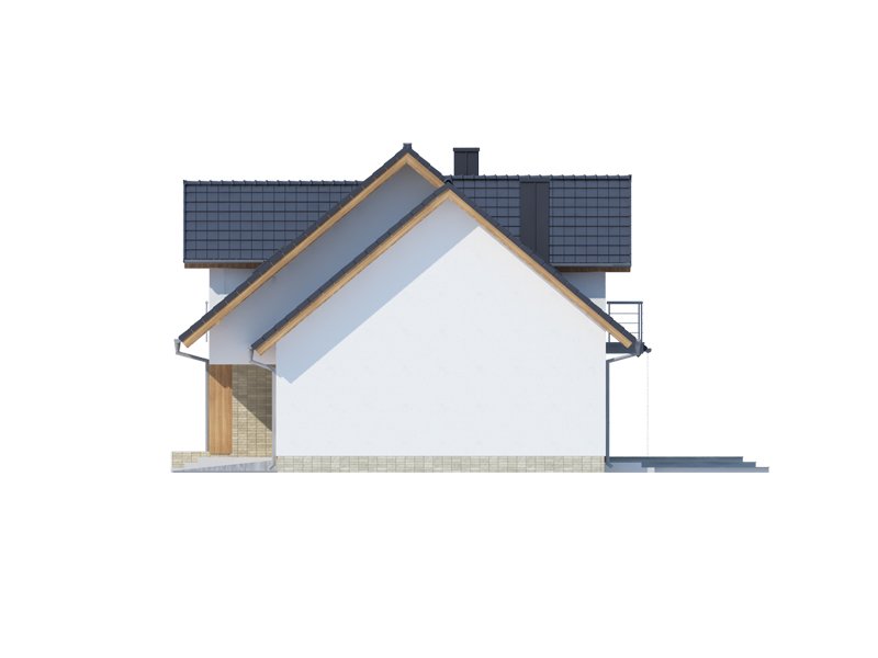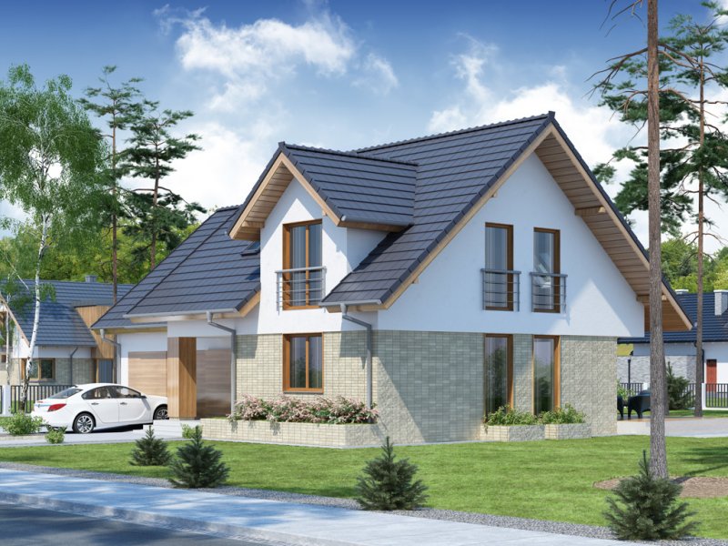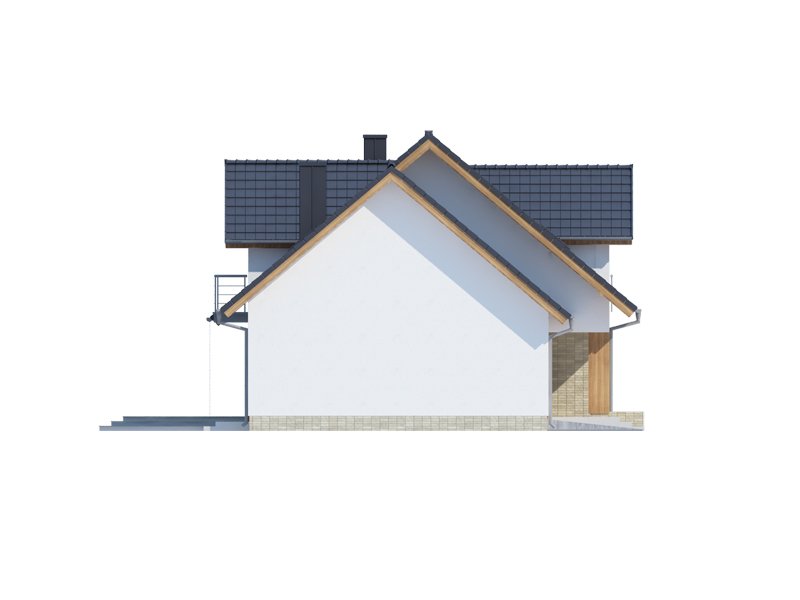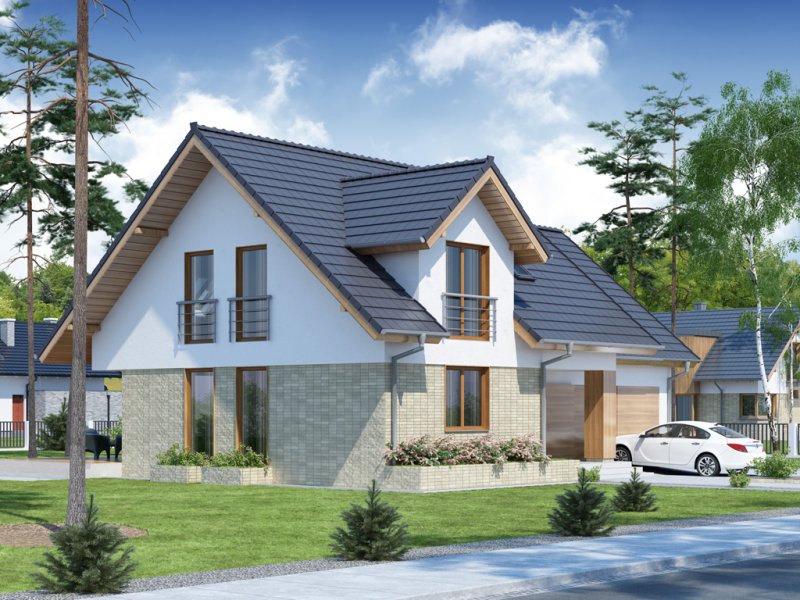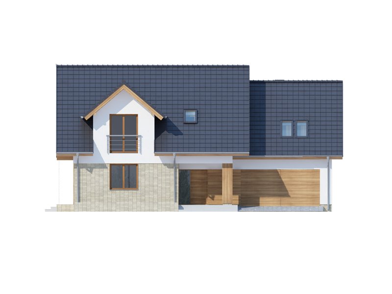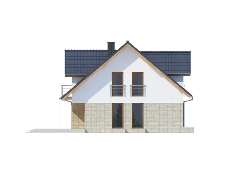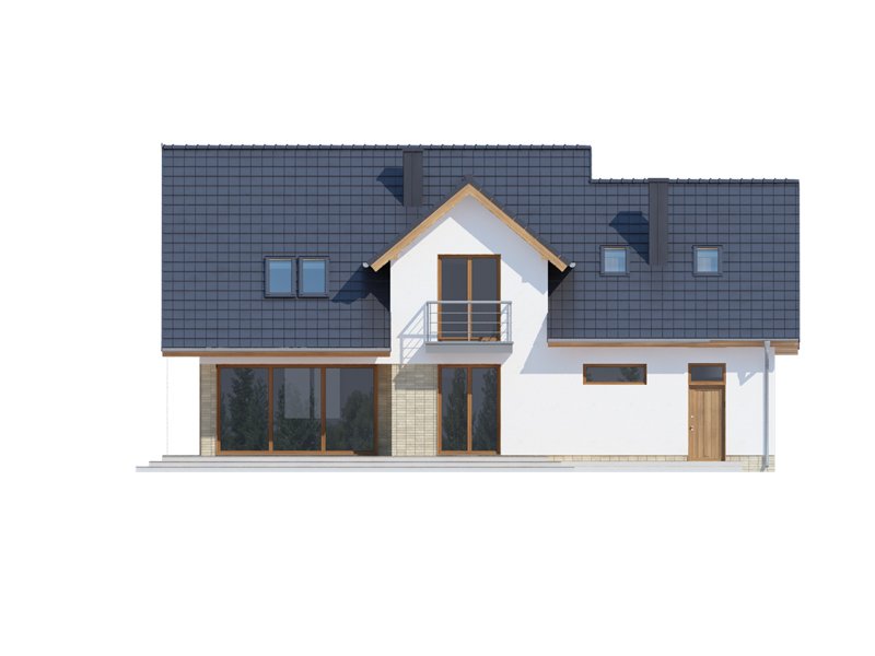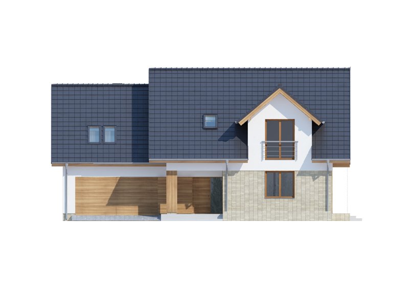 Dom z poddaszem użytkowym, przeznaczony dla 4-5-osobowej rodziny. Na parterze znajduje się przestronny pokój dzienny połączony z jadalnią, oddzielony ścianką od kuchni (z możliwością jej otwarcia). Wyjście na taras z podcieniem jest możliwe zarówno z salonu jak i z dodatkowego pokoju, który może pełnić funkcję gabinetu. Obszerny garaż dwustanowiskowy wyposażony jest w dodatkowy aneks gospodarczy. Na poddaszu znajdują się trzy sypialnie- każda z własną garderobą, dwie łazienki oraz pralnia. Nad garażem można zaadaptować strych nieużytkowy na dodatkowe pomieszczenie gospodarcze lub pokój.