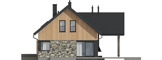 Dom Nikolas G1 to idealne połączenie nowoczesnego designu z funkcjonalnością. Projekt wspaniale prezentuje się zarówno z zewnętrz, jak i od środka. Atrakcyjna bryła wzbogacona szerokimi przeszkleniami i pięknym, dekoracyjnym kamieniem skrywa w swym wnętrzu świetnie zorganizowany układ pomieszczeń. Na szczególną uwagę zasługuje rodzinna strefa dzienna, która po rozsunięciu panoramicznych okien harmonijnie powiększa się o przestrzeń komfortowego tarasu – wymarzone miejsce na przyjemne leniuchowanie oraz roześmiane spotkania przy grillu. Projekt domu Nikolas G1 to wygoda, relaks i dyskretny luksus w jednym.
