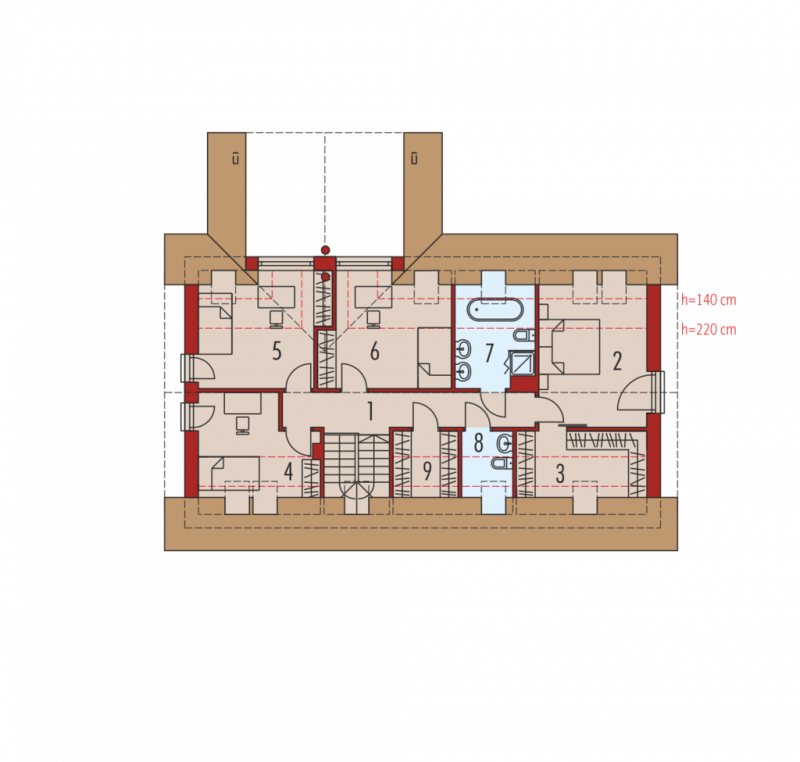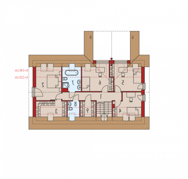 Dach: konstrukcja drewniana, ocieplenie wełna mineralna 30 cm, dachówka ceramiczna płaska Bergamo firmy Röben