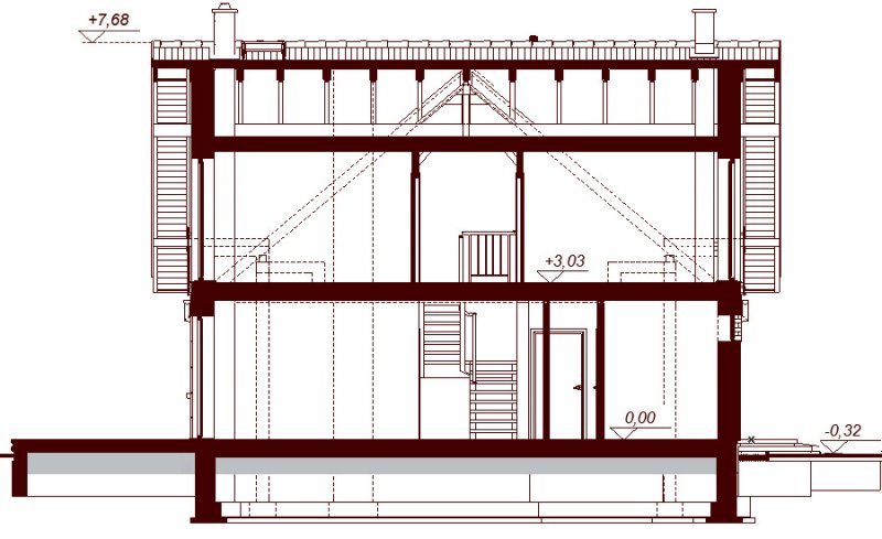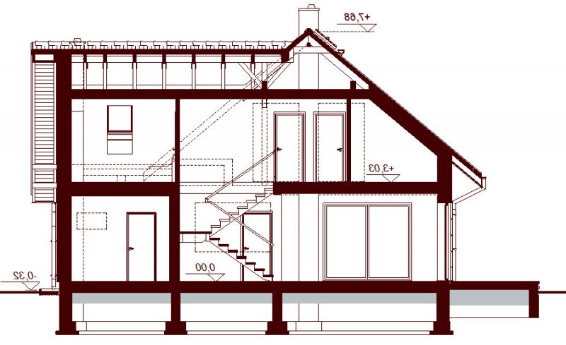 Ścianki wewnętrze działowe na parterze z bloczków, na poddaszu z płyt GK bądź z bloczków.