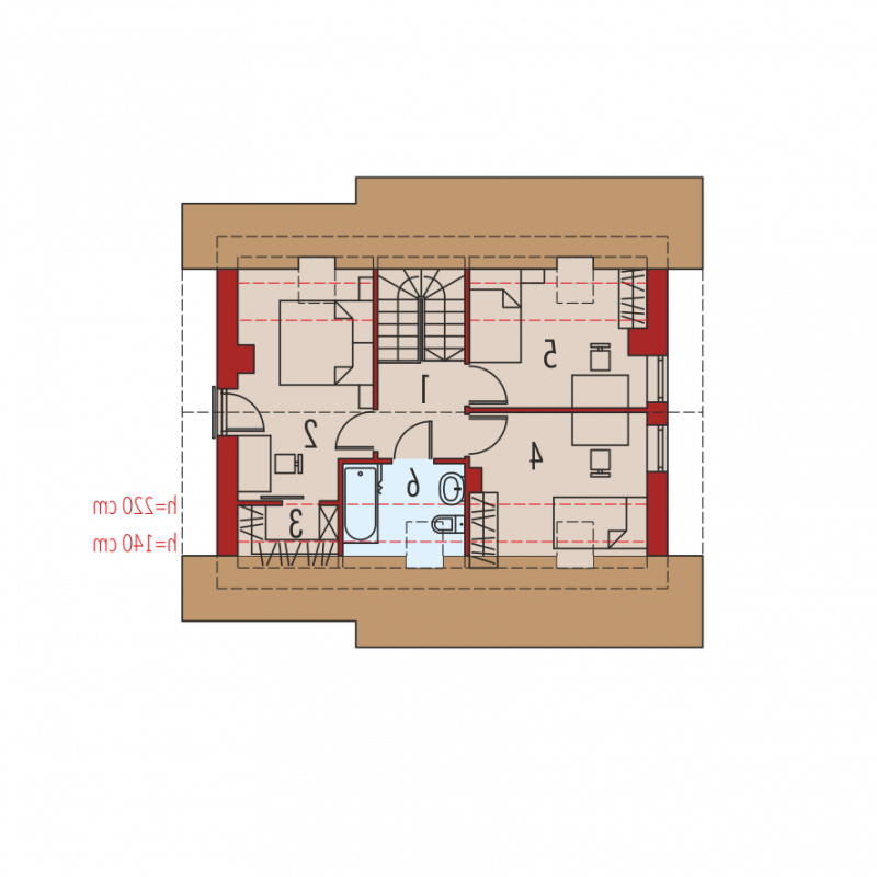 Dach: konstrukcja drewniana, ocieplenie wełna mineralna 30 cm, dachówka płaska lub inna o podobnych parametrach