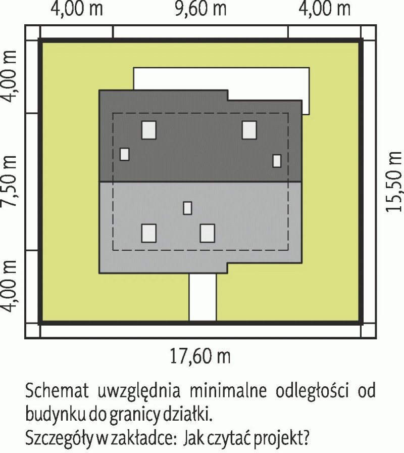 - Min. wymiary działki 17.60x15.50 m