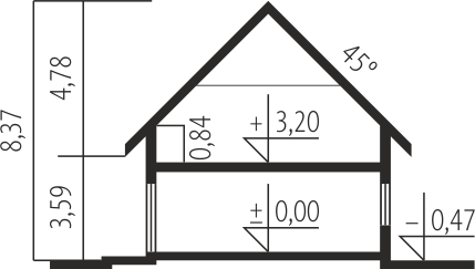 - Kąt nachylenia dachu 45.00°