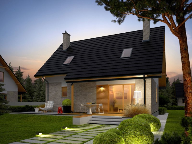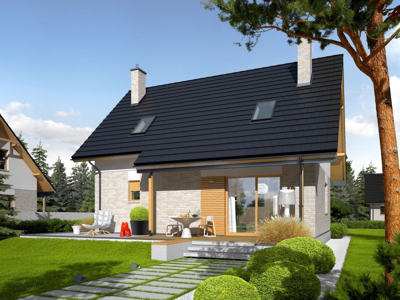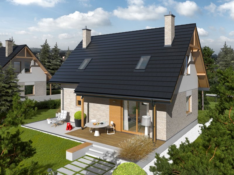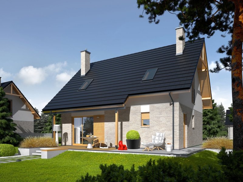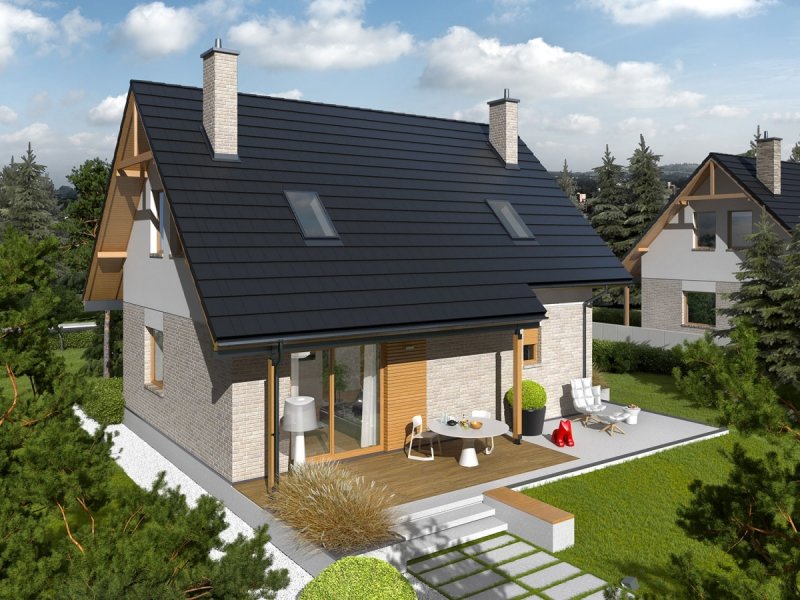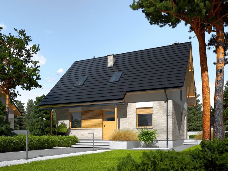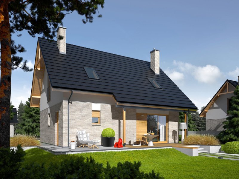 Oli to prosty i tani w budowie dom, który świetnie odnajdzie się w każdym krajobrazie. Przytulny wdzięk w połączeniu z optymalnie rozplanowanym układem pomieszczeń zapewnia domownikom maksimum prywatności i swobody. Atutem projektu są również bardzo dobre parametry cieplne.