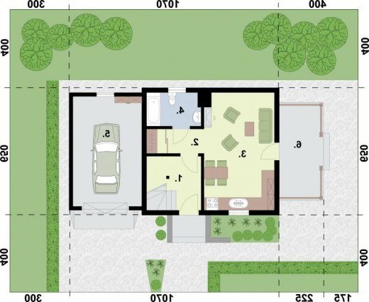 Orlean 5 - projekt domu letniskowego z werandą i garażem. Funcknonalnością odzwierciedla projekt Orlean. Jednak garaż przyklejony do bryły budynku sprawia, że mamy do czynienia z zupełnie nową jakością. To rozwiązanie ucieszy tych, którzy dbają o swój samochód poprzez garażowanie go. Dom z garażem jest połączony w ten sposób, by towarzystwo garażu nie przeszkadzało domownikom (spaliny, oleje, hałas). Domu i garażu nie łączy wewnętrzne przejście. Całość jest imponująca i zaprojektowana, tak by cieszyć oko oraz zyskiwać uznanie przemyślanym rozplanowaniem wnętrz i ich funkcjonalnością.