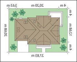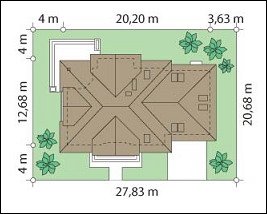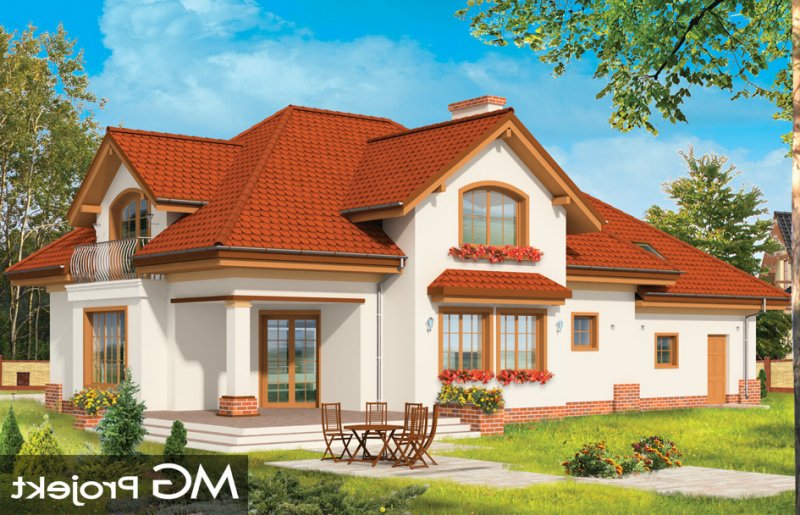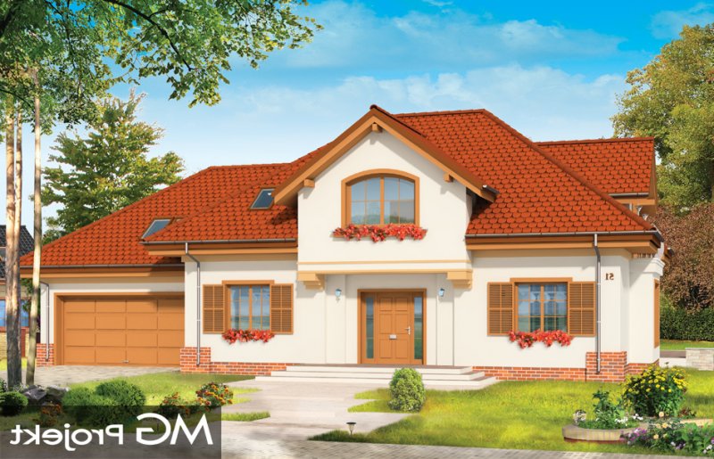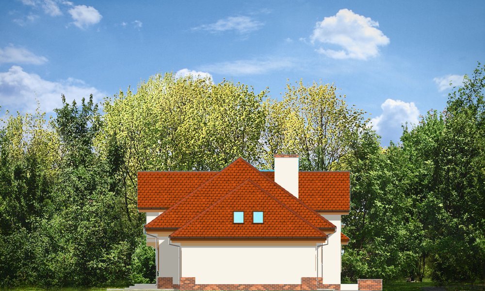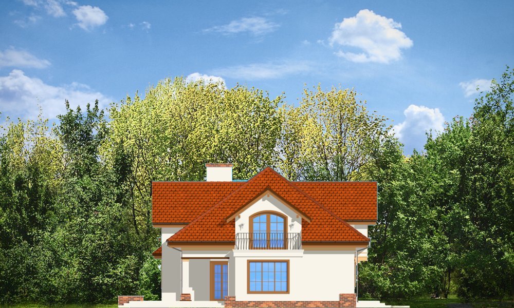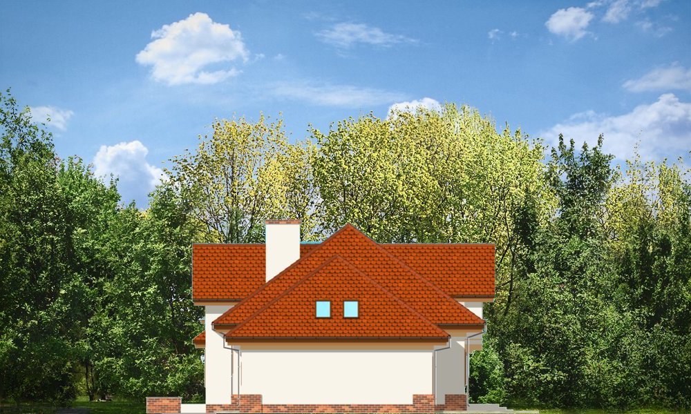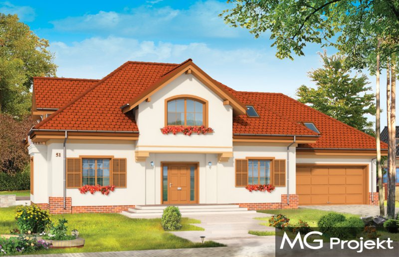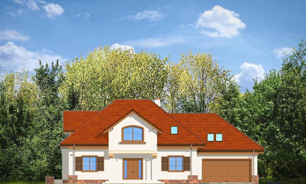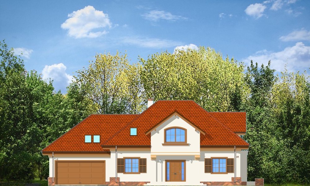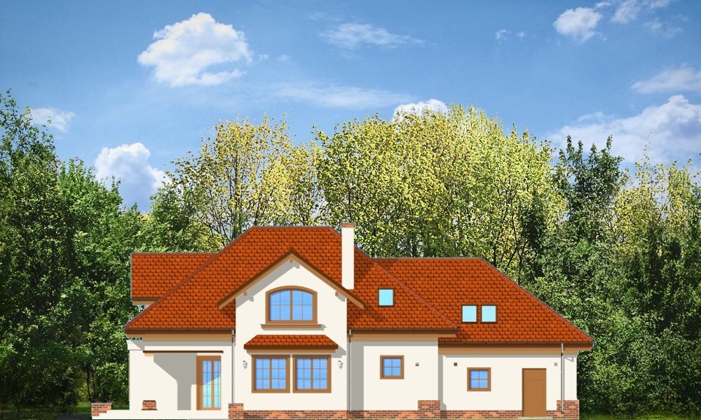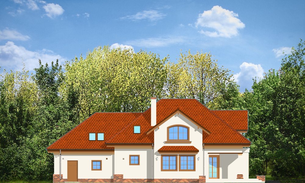 Pod dębem to obszerny parterowa willa z poddaszem użytkowym. Przeznaczony jest dla 4-5 cioosobowej rodziny. Bryła budynku przekrytazostała czterospadowym dachem z dużymi lukarnami na każdej z elewacji sprawia, że dom wygląda atrakcyjnie z każdej strony. Wygląd zewnętrzny urozmaicono wykuszami, balkonem oraz podcieniem ogrodowym. Front budynku spodoba się Klientom ceniącym tradycyjną architekturę, ale nie koniecznie chcącym mieć kolumny przy wejściu do swojego domu. Wnętrze parteru to połączona przestrzeń holu, salonu, jadalni i kuchni, oraz dodatkowy pokój. Na poddaszu zaprojektowano cztery pokoje, oraz strych nad garażem, który można dowolnie wykorzystać. Projekt dostępny jest też w odbiciu lustrzanym.