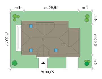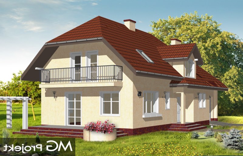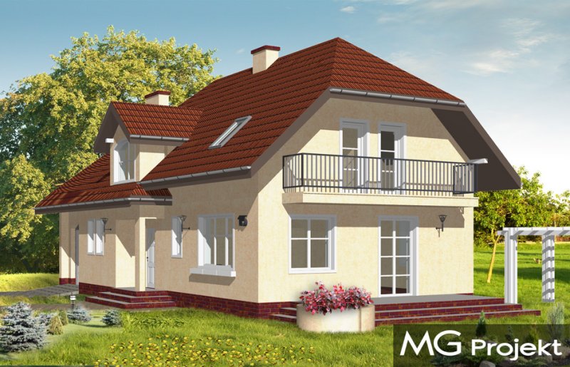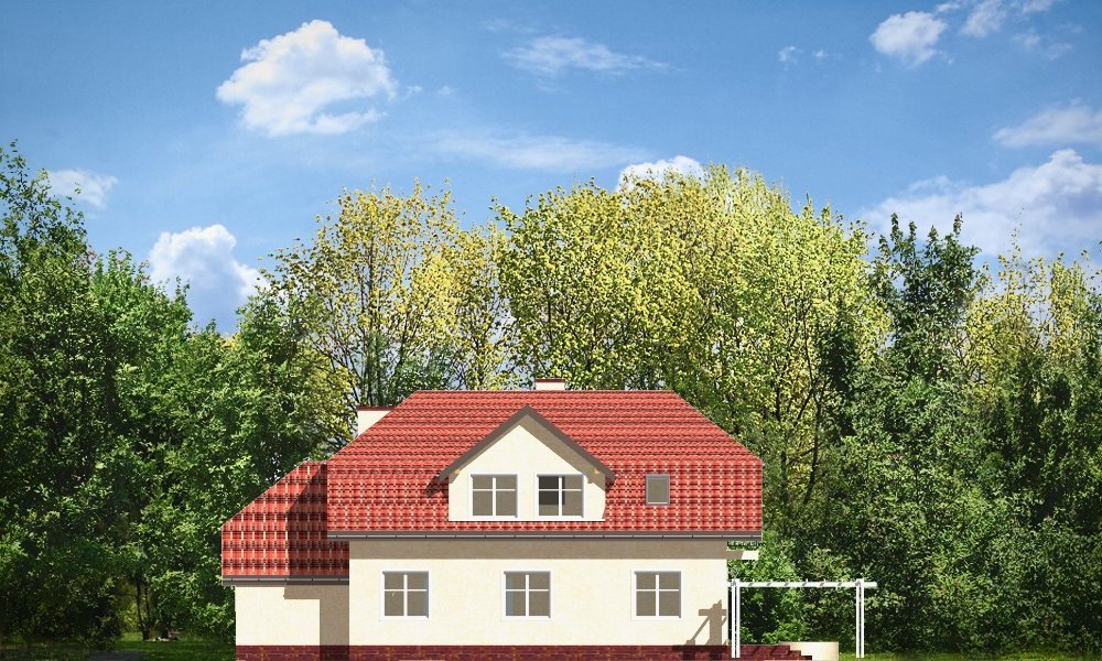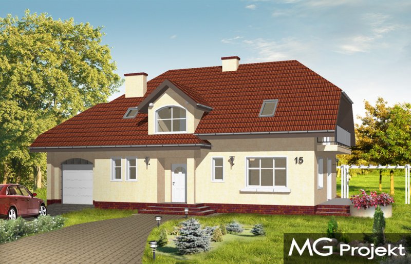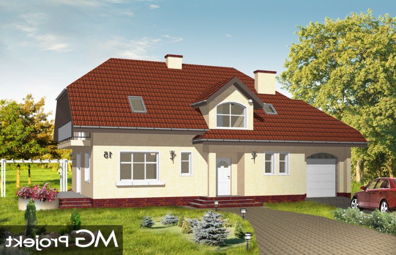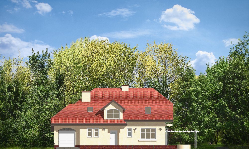 Pogodny 3 to reprezentacyjna willa z garażem, dla rodziny cztero-pięcioosobowej. Dom został rozplanowany w taki sposób aby pasował również na wąską działkę, z ogrodem z boku. Wnętrze parteru to: duża kuchnia z kącikiem jadalnym, obszerny salon z kominkiem w środkowej części domu, kształtny hol z wygodnymi schodami. Na poddaszu zaprojektowano trzy duże sypialnie, łazienkę, hol z aneksem i strych nad garażem, który może pełnić funkcję dodatkowego pokoju. Projekt dostępny jest także w odbiciu lustrzanym.