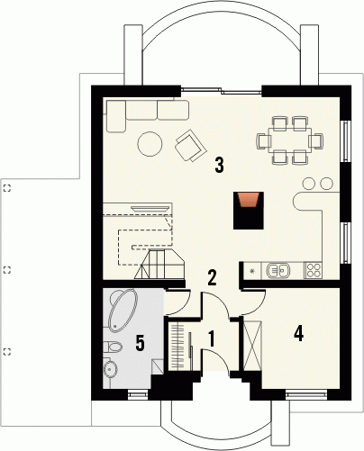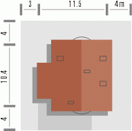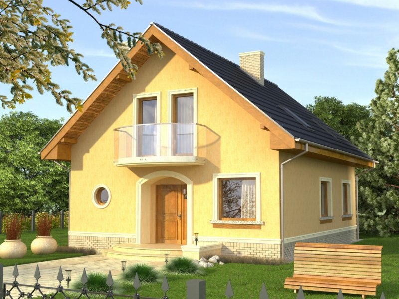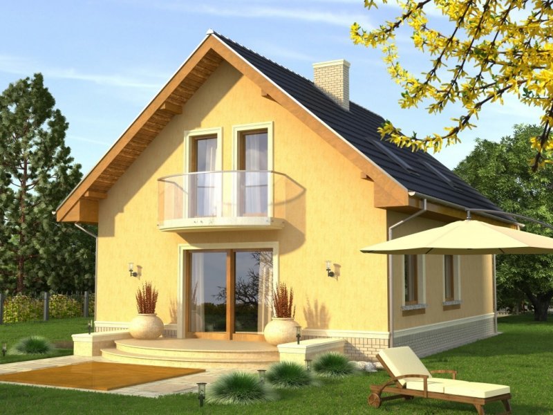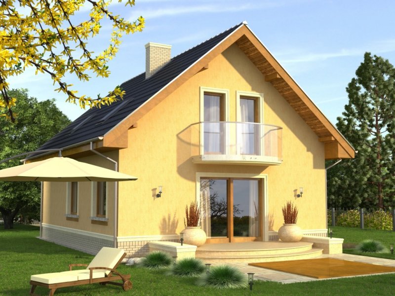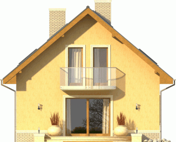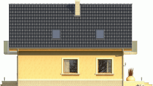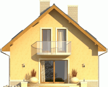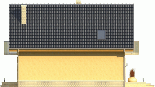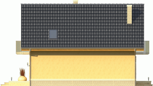 Ekonomiczny dom z dachem dwuspadowym, z wejściem na osi ściany szczytowej budynku. Jego zaletą są wyważone proporcje oraz stonowana kolorystyka, dzięki czemu będzie dobrze się prezentował w każdym otoczeniu.