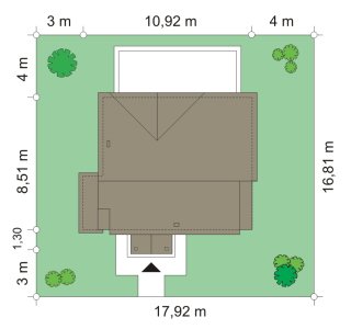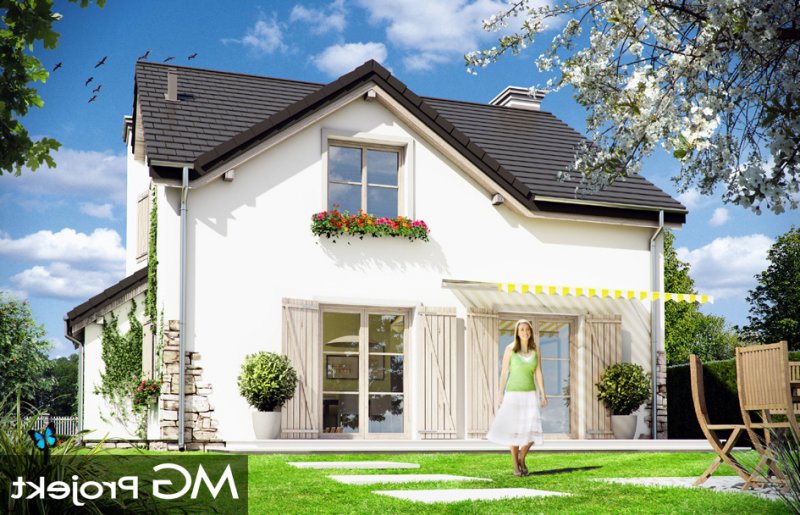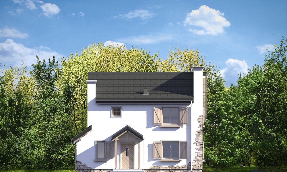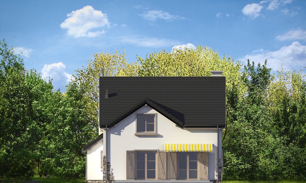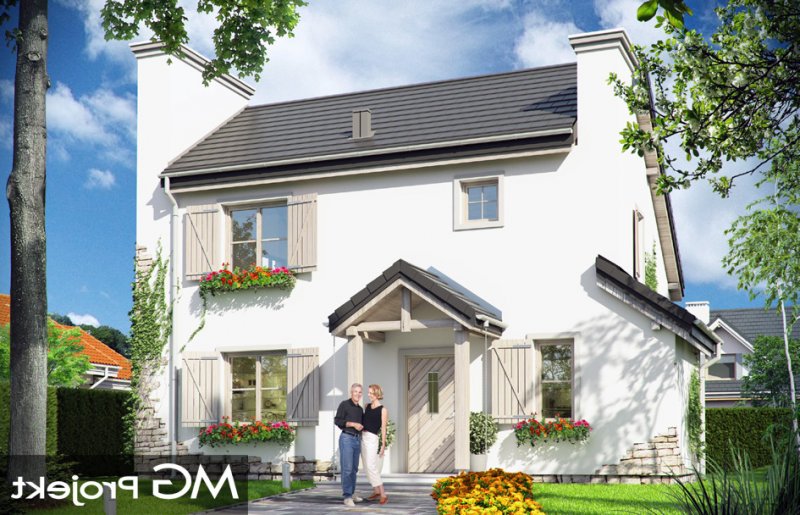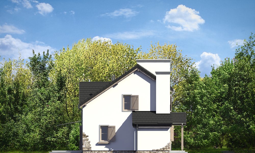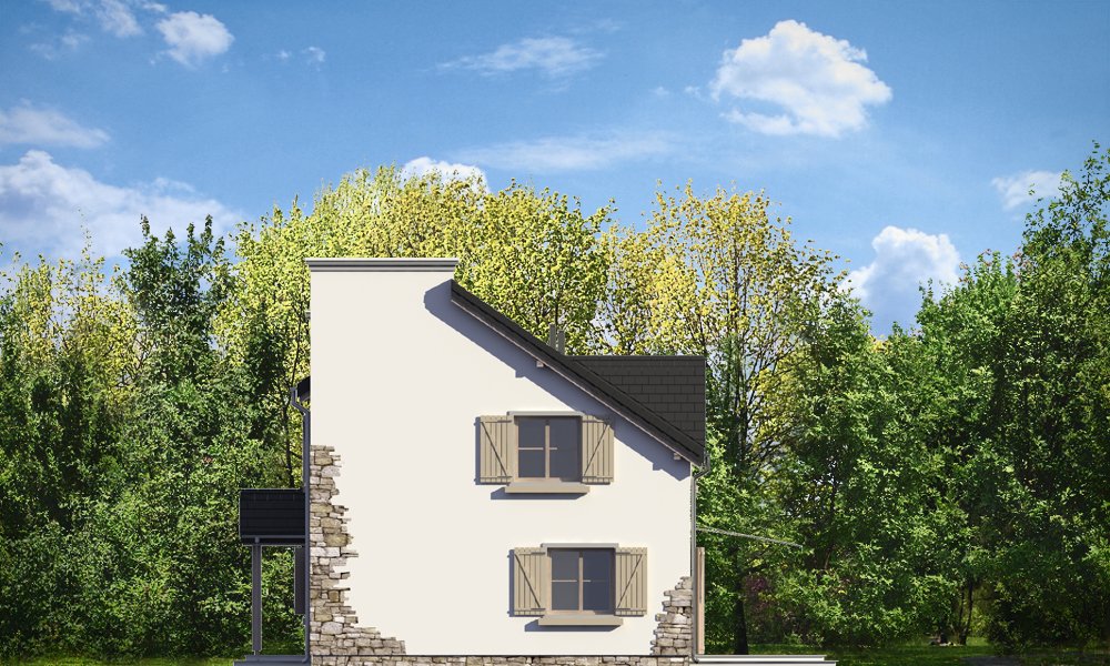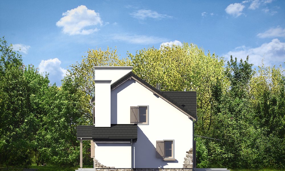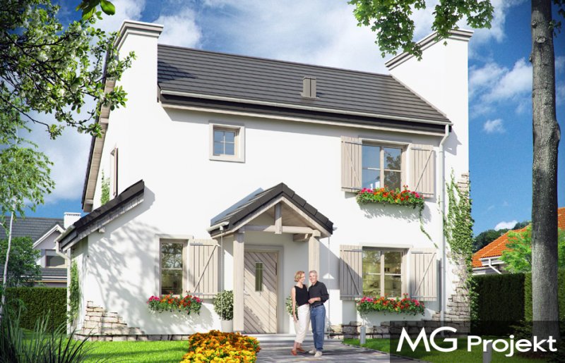Prowansalski to uroczy domek jednorodzinny - oryginalny, o nieprzeciętnym stylu. Prowansalski - jak sama nazwa wskazuje nawiązuje do architektury śródziemnomorskich willi, tak pięknie komponujących się z otoczeniem i przyrodą. Domek przewidziany jest do stałego zamieszkiwania czteroosobowej rodziny, może być zarówno domem mieszkalnym, jak i wakacyjną rezydencją. Dom najlepiej wpasuje się w otoczenie z większą ilością zieleni, przestrzeni, lub w sąsiedztwo innych domów z duszą. Stylizowana na wiejską siedzibę forma domu kryje w sobie nowoczesny, energooszczędny budynek, zaprojektowany z najnowszych materiałów. Prosta była budynku, z dwuspadowym dachem nad poddaszem pozwoli na niedrogą budowę. Jedynymi ekstrawaganckimi elementami są sztucznie powiększone dwa potężne kominy w ścianach szczytowych domu, stanowiące w dużej mierze o jego stylu i sylwetce. Elewacja frontowa jest trochę bardziej oficjalna, natomiast z tyłu, za pomocą dużych przeszkleń, dom łagodnie otwiera się na ogród. Wnętrze to część dzienna na parterze i pokoje sypialne na poddaszu. Na dole uzyskano ładną otwartą przestrzeń dzienną, z połączenia salonu, holu - z ładnie wyeksponowanymi schodami, oraz kuchni. Dodatkowo, z przedsionka mamy dostęp do dużego pomieszczenia kotłowni, a z holu do dodatkowego pokoju – gabinetu, bądź sypialni gościnnej. Na poddaszu dzięki wysokim ścianom kolankowym niemal w ogóle nie ma skosów w sypialniach. Dzięki temu przestrzeń wszystkich trzech sypialni, wygodnej łazienki i garderoby można w pełni wykorzystać. Prezentowany dom ma prostą konstrukcję, powinien być łatwy w budowie. Ma korzystną proporcję powierzchni przegród zewnętrznych do kubatury - zupełnie jak w budynkach piętrowych. Po części jest budynkiem piętrowym, choć oficjalnie można go traktować jako dom z poddaszem użytkowym. Pracownia posiada wersję odbicia lustrzanego projektu.