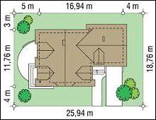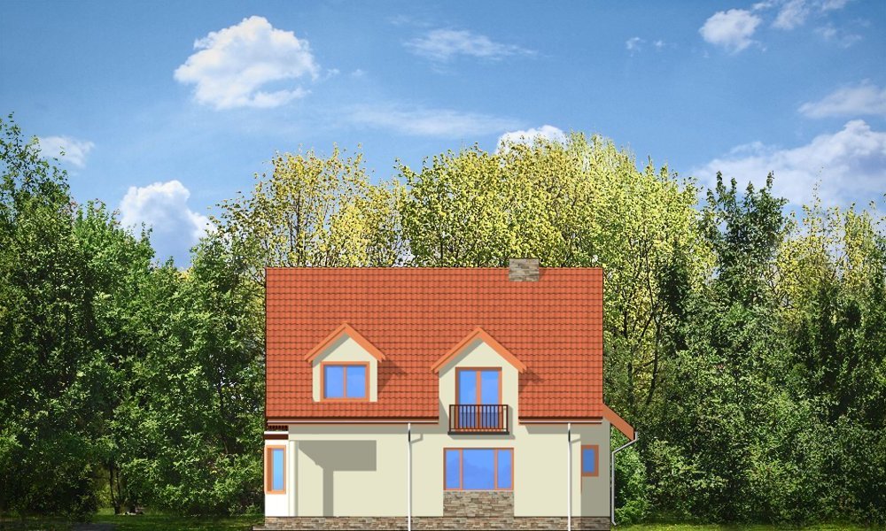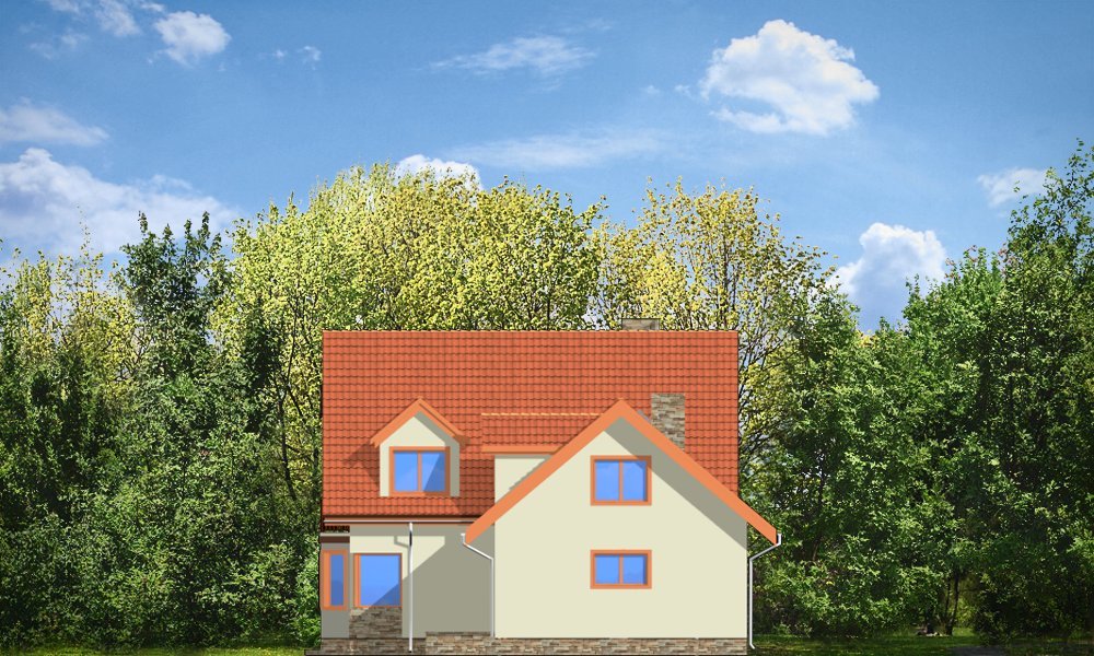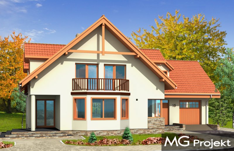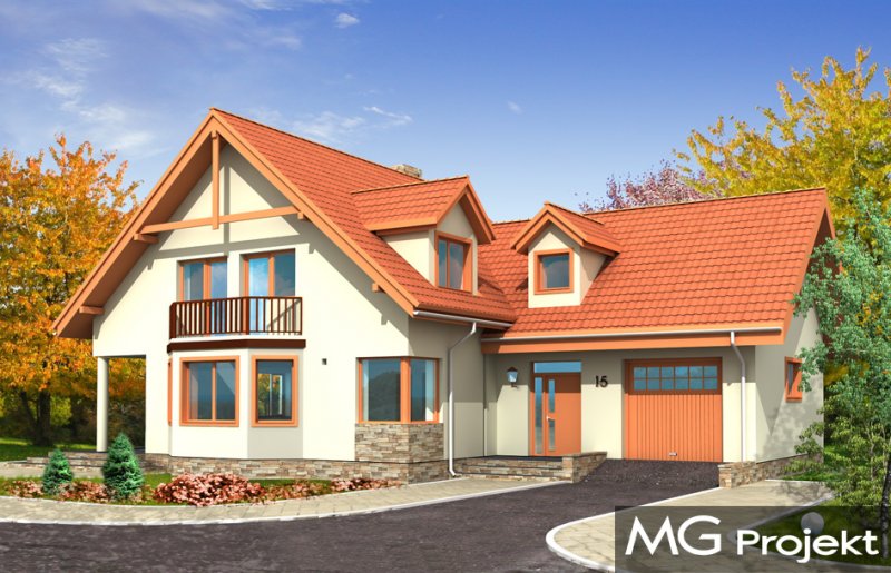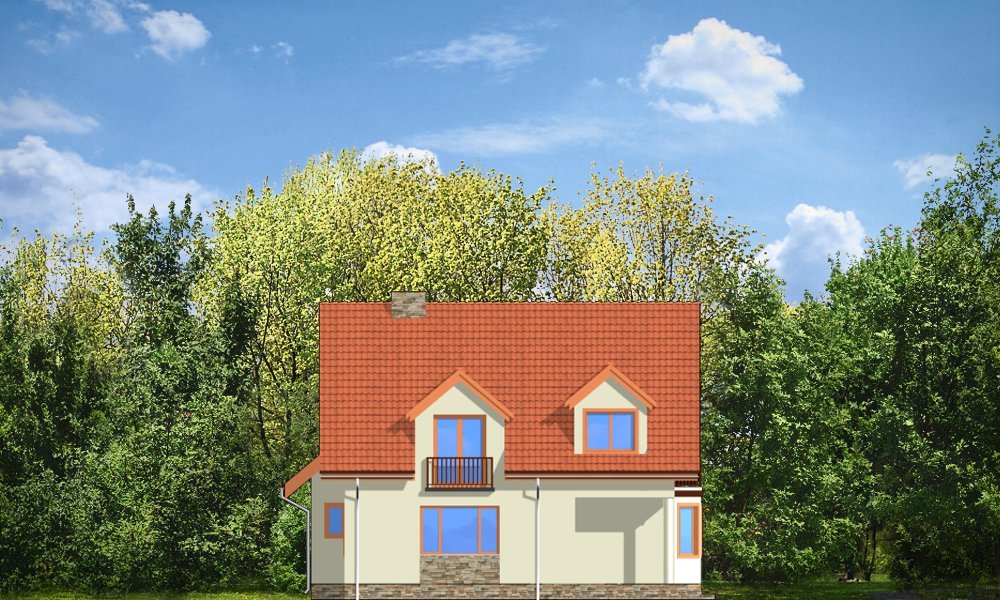 Przestronny to dom jednorodzinny dla rodziny cztero-pięcioosobowej, zaprojektowany z myślą o działkach z niekorzystnym dostępem do drogi. Salon został zaplanowany po tej samej stronie budynku co wejście. Funkcje te są jednak odgrodzone: w prawym narożniku zaprojektowano drzwi wejściowe do domu, podjazd do garażu - widziane z kuchennego narożnego okna. W projekcie podcień i taras, będący przedłużeniem salonu znajdują się w lewym narożniku. Dostępne jest także odbicie lustrzane projektu.