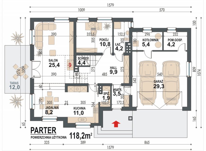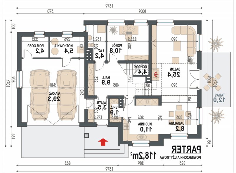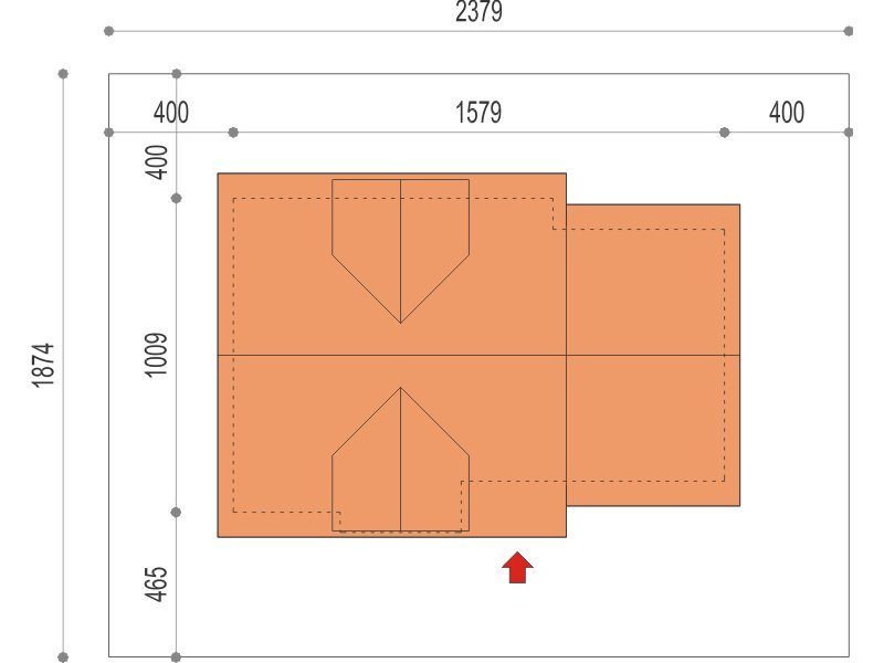 - Min. wymiary działki 23.79x18.74 m