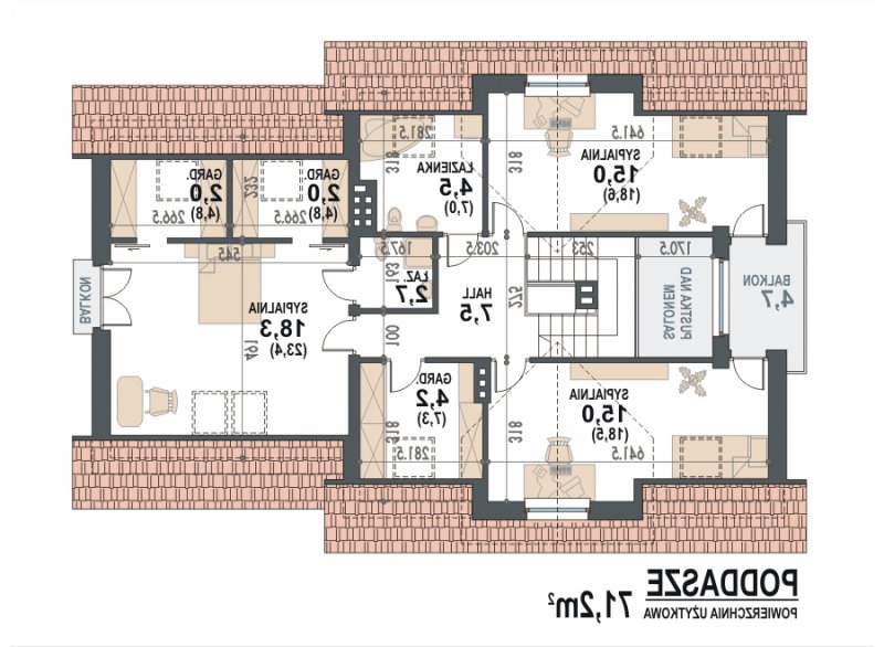 - Kąt nachylenia dachu 39.00°