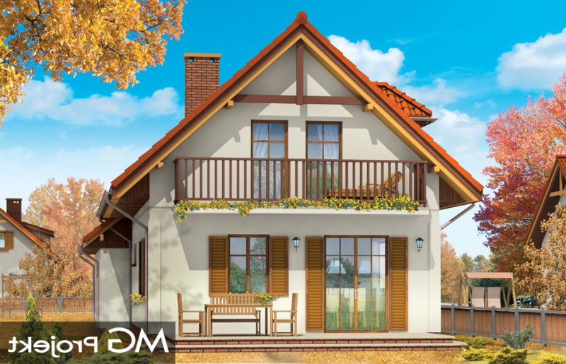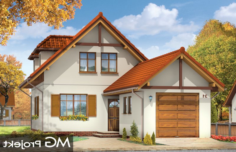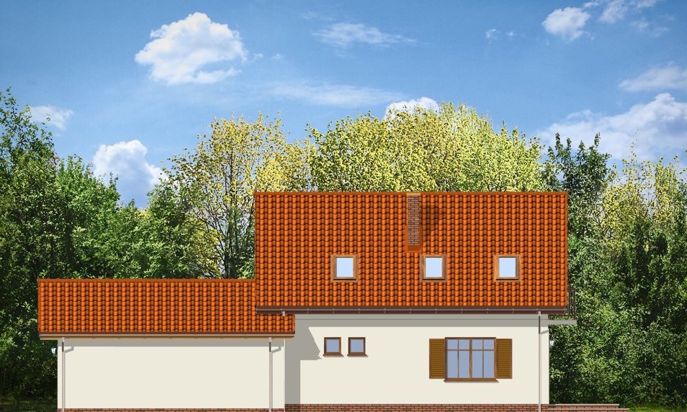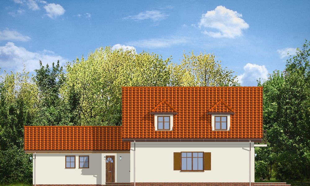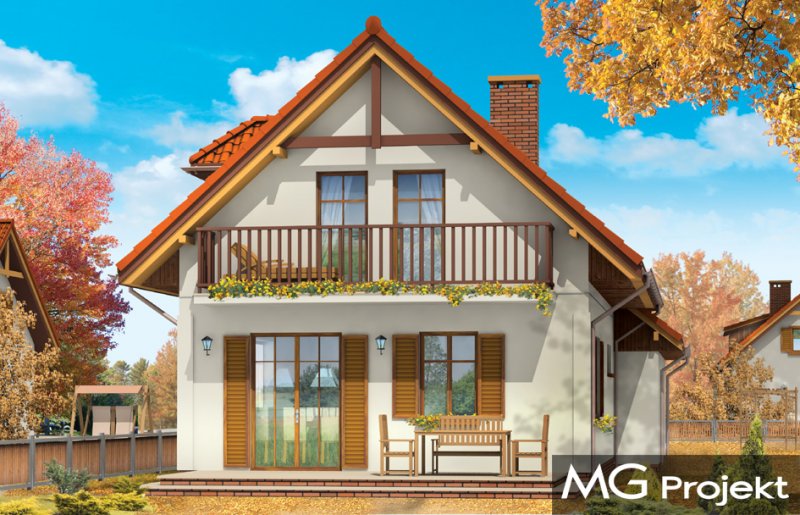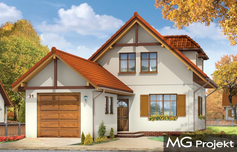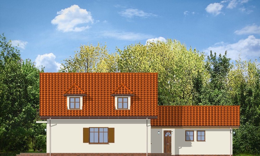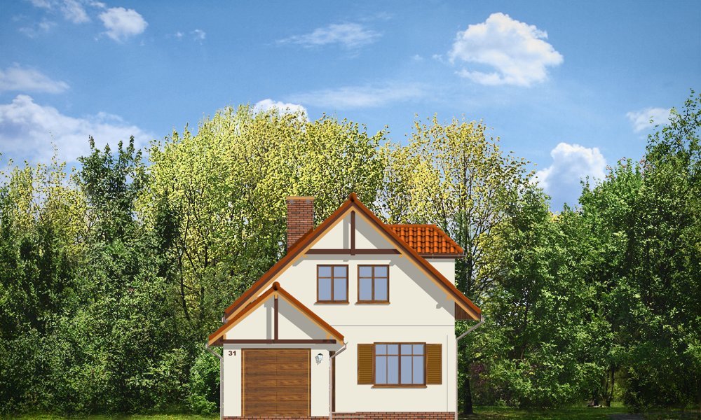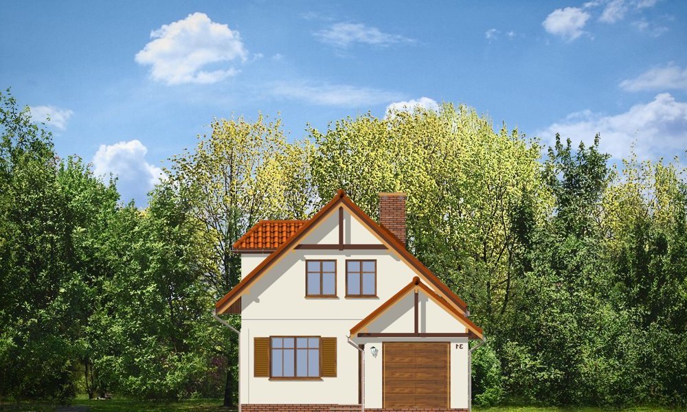 Puchatek to domek jednorodzinny z poddaszem użytkowym dla rodziny 4-5 osobowej. Dom z garażem wysuniętym przed ścianę frontową budynku idealnie pasuje na wąską działkę, lub na działkę przy ruchliwej ulicy, gdzie inwestor chce akustycznie i wizualnie odgrodzić się od drogi. Puchatek chociaż jest niewielki ma na parterze przestronny salon z kominkiem, z aneksem jadalnym, otwarty na kuchnię i hol, z widocznymi schodami. Na poddaszu zaprojektowano trzy sypialnie i łazienkę. Dom jest prosty w konstrukcji, łatwy w budowie. Sympatyczny, pełen wdzięku wygląd idzie tu w parze z wygodnym i funkcjonalnym wnętrzem. Pracownia posiada również projekt w odbiciu lustrzanym.