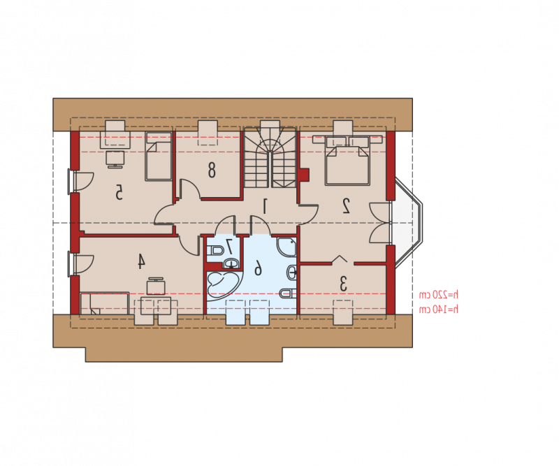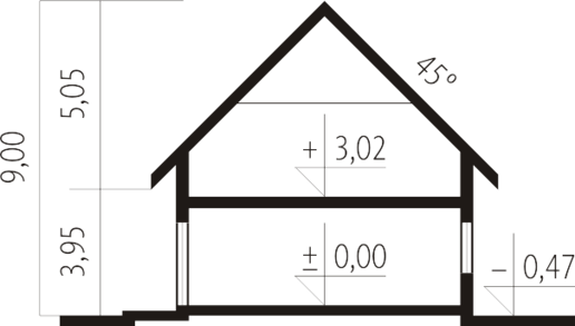 - Kąt nachylenia dachu 45.00°