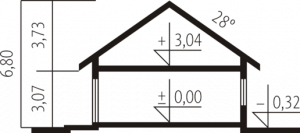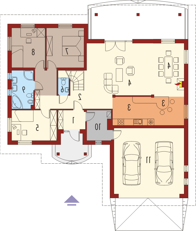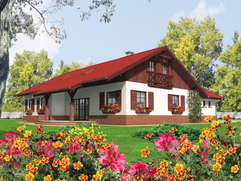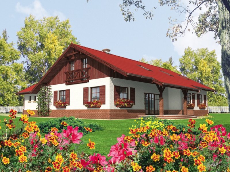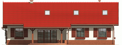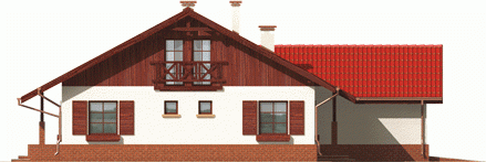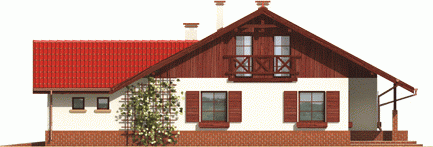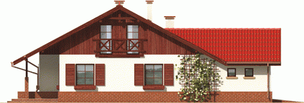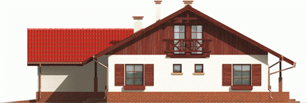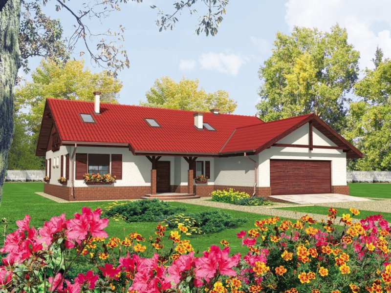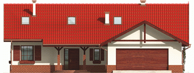 Dom parterowy z poddaszem do późniejszej adaptacji niepodpiwniczony z wbudowanym garażem przeznaczony dla 4-5-osobowej rodziny. Charakteryzuje się zwartą bryłą i przejrzystym układem funkcjonalnym. Parter składa się z funkcjonalnej części dziennej oraz wyraźnie oddzielonej części nocnej. Strefa dzienna to kuchnia salon z kominkiem otwarty na ogród oraz toaleta znajdująca się pod biegiem schodów. Strefę nocną tworzą dwie sypialnie oraz duża łazienka. Gabinet który znajduje się w sąsiedztwie sterfy nocnej może pełnić rolę dodatkowej sypialni.