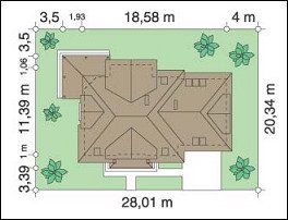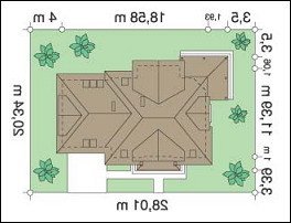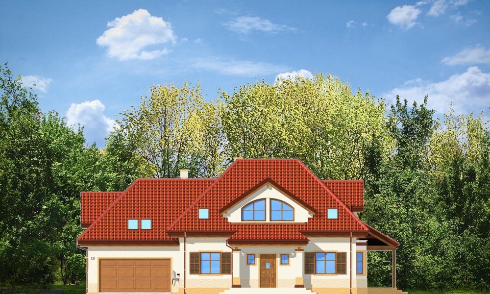 Rubin to przestronny dom dla 4-6osobowej rodziny, o nietuzinkowej architekturze i ciekawym wnętrzu. Projekt posiada nietypowe rozwiązania, jak duże okno w salonie z otwarciem przestrzennym na antresolę na poddaszu, czy narożny zadaszony podcień z tarasem. Te detale dodają projektowi oryginalnego wyrazu. Wnętrze domu jest przemyślane i jednocześnie maksymalnie funkcjonalne. Na parterze oprócz dużej otwartej przestrzeni dziennej zaprojektowano dodatkowy pokój, natomiast na poddaszu zmieszczono aż pięć pokoi i dużą łazienkę. Pracownia posiada też projekt w odbiciu lustrzanym.