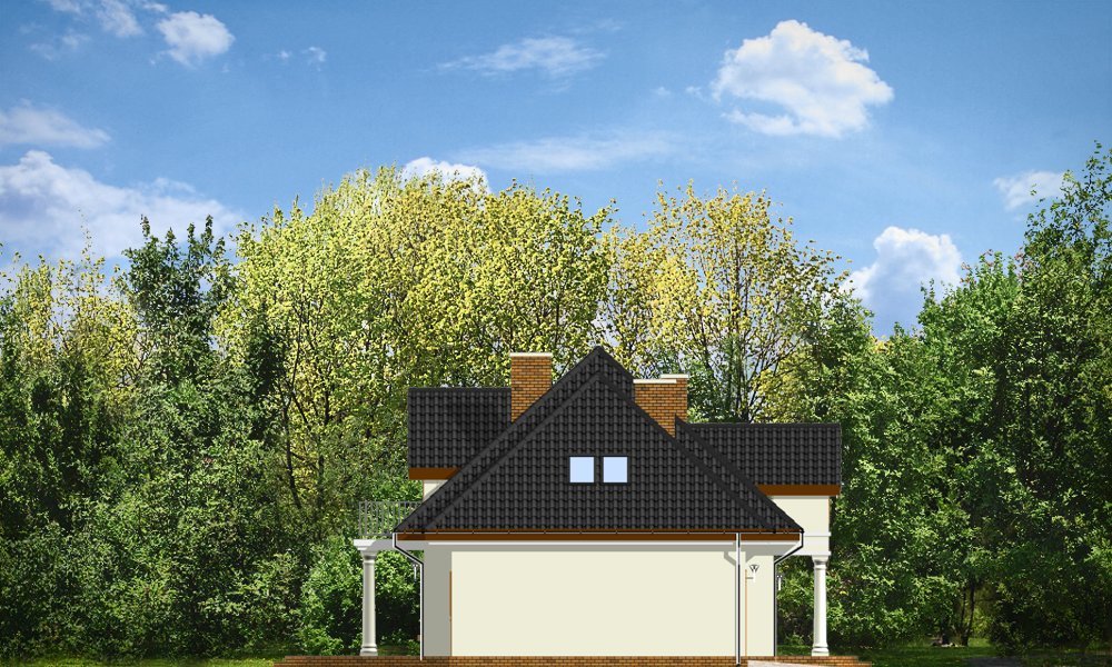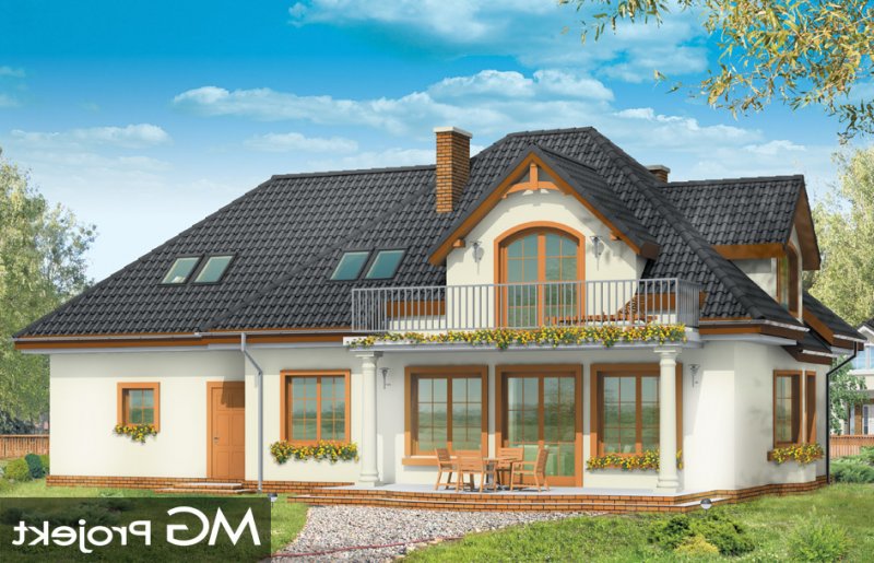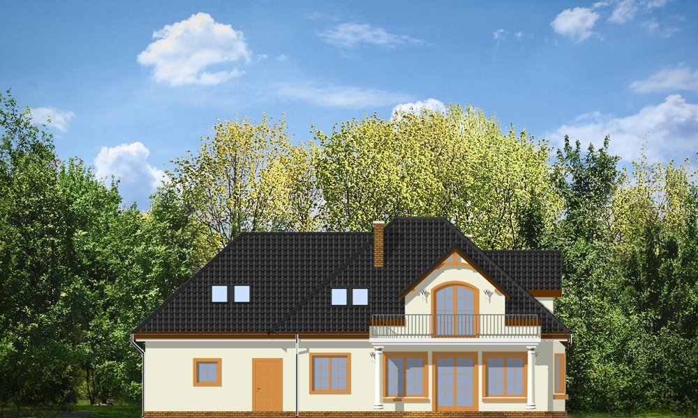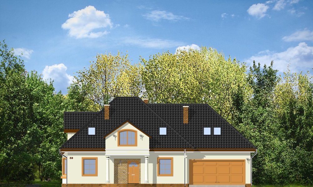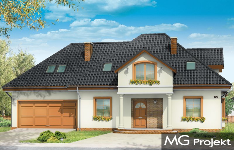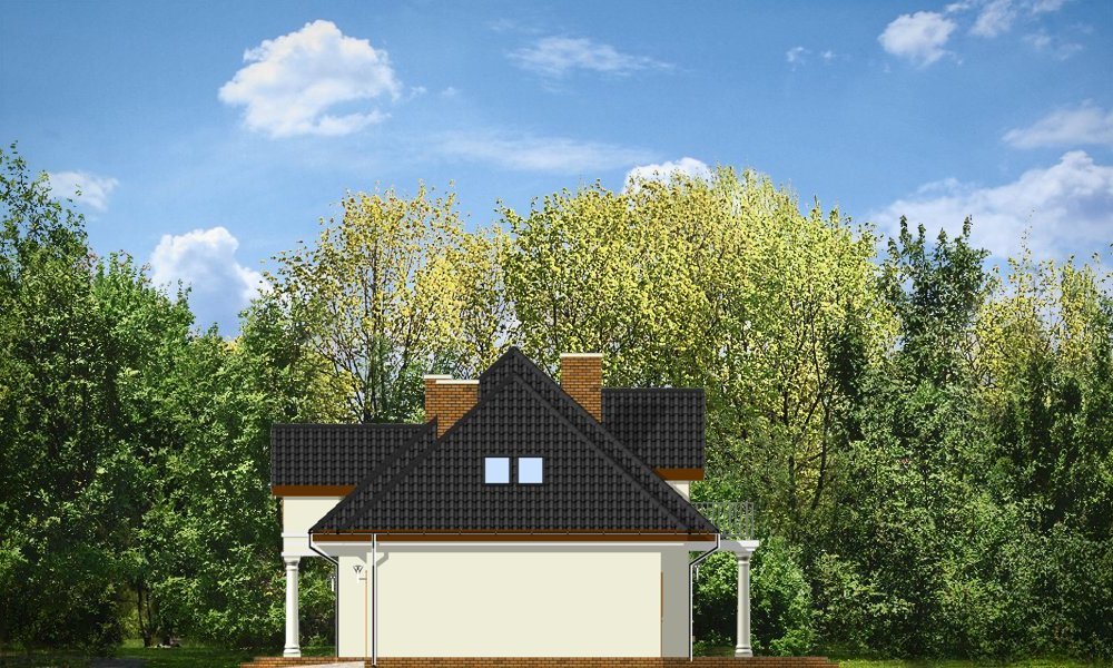 Saga 3, to odpowiedź naszej pracowni na życzenie wielu naszych Klientów, którzy chcieli widzieć ten domek z dwustanowiskowym garażem. Projekt Saga cieszy się dużą popularnością, nie mniej jednak część osób rezygnowało z niego ze względu na pojedynczy garaż. Teraz możecie Państwo wybierać między projektami Sagą z pojedynczym i podwójnym garażem. Dom ma bardzo zgrabną bryłę, główna część budynku przekryta jest czterospadowym dachem, z eleganckim frontonem wspartym na kolumnach wejściowych, oraz pięknym balkonem i lukarną od strony ogrodu. Dobudowany szerszy garaż wpływa korzystnie na proporcje domu - Saga 3 wygląda wręcz bardziej dostojnie w tej wersji. Wnętrze w projekcie nie uległo zmianie - na parterze znajduje się jednoprzestrzenny salon, połączony z holem, jadalnią i częściowo z kuchnią. Na parterze zaprojektowano dodatkowy pokój, łazienkę i kotłownię. W projekcie, za podwójnym garażem znajduje się pomieszczenie gospodarcze. Na poddaszudomu, dzięki powiększeniu przestrzeni nad garażem zmieściły się cztery pokoje z łazienką, garderobami i dodatkowo stryszkiem. Projekt występuje również w wersji odbicia lustrzanego.