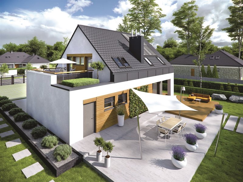 Przestrzeń, komfort i dyskretny luksus to słowa, które najlepiej opisują charakter fantastycznego domu Sam G1. Projekt idealnie łączy nowoczesną elegancję z funkcjonalnością i energooszczędnością. W jego świetnie zorganizowanym wnętrzu znakomicie odnajdą się wszyscy, którzy chcą mieszkać wygodnie, przytulnie i w najlepszym stylu. Projekt domu Sam G1 to nasza odpowiedź na współczesne trendy.