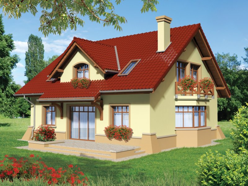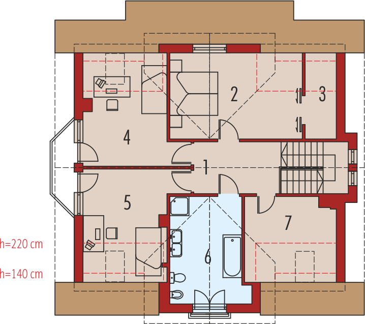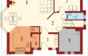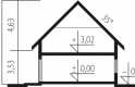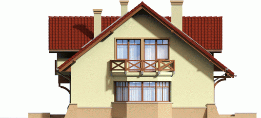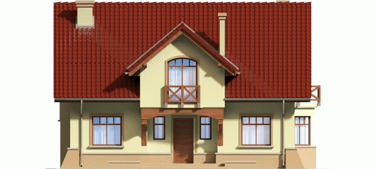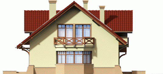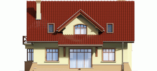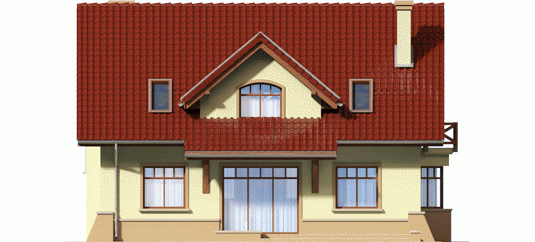 Dom parterowy, z poddaszem użytkowym, niepodpiwniczony, przeznaczony dla 4-5-osobowej rodziny. Na parterze w strefie dziennej, znajduje się duży salon z kominkiem połączony z jadalnią, gabinet, kuchnia, spiżarnia, pomieszczenie gospodarcze i toaleta dla gości znajdujące się pod schodami. Na poddaszu zaplanowano strefę nocną; z trzema sypialniami, dużą łazienką i garderobami.