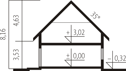 - Kąt nachylenia dachu 35.00°