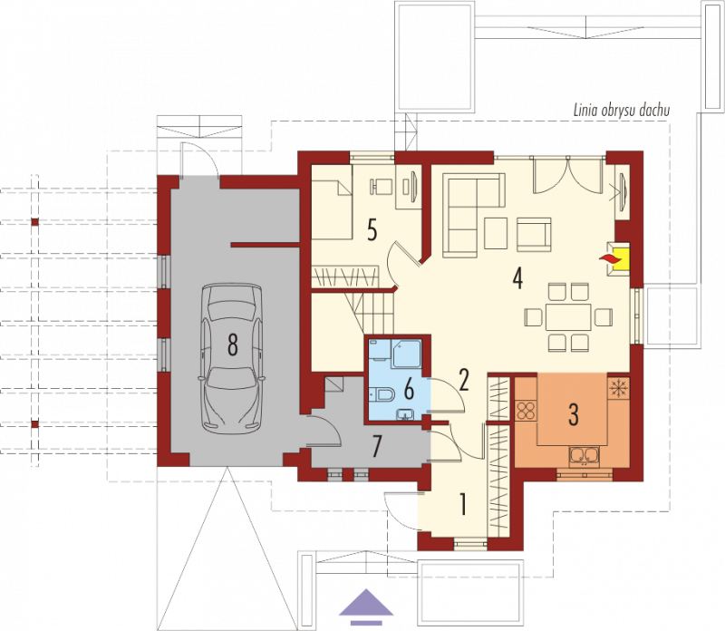 Dom parterowy z poddaszem użytkowym, niepodpiwniczony, z garażem jednostanowiskowym. Przeznaczony dla 4-5-osobowej rodziny. Na parterze zaprojektowano strefę dzienną: salon z kominkiem, kuchnię oraz obszerną jadalnię. Znalazł się tu również gabinet, łazienka i pomieszczenie gospodarcze. Strefę nocną zlokalizowano na poddaszu. Tworzą ją trzy komfortowe sypialnie w tym jedna z łazienką i garderobą oraz druga ogólnodostępna łazienka. Sebastian II G1 to dom, który od pierwszego wejrzenia uwodzi swoją bryłą i ciekawie rozrzeźbionym dachem. Charakterystycznym elementem budynku jest atrakcyjna pergola, sąsiadująca z garażem. Funkcjonalny układ pomieszczeń został zaprojektowany z najwyższą troską o komfort domowników. Strefę wejściową oraz wyjście na taras zaakcentowano gustownym zadaszeniem. Istnieje możliwość: - podpiwniczenia budynku - zbliźniaczenia - wykonania domu dwulokalowego