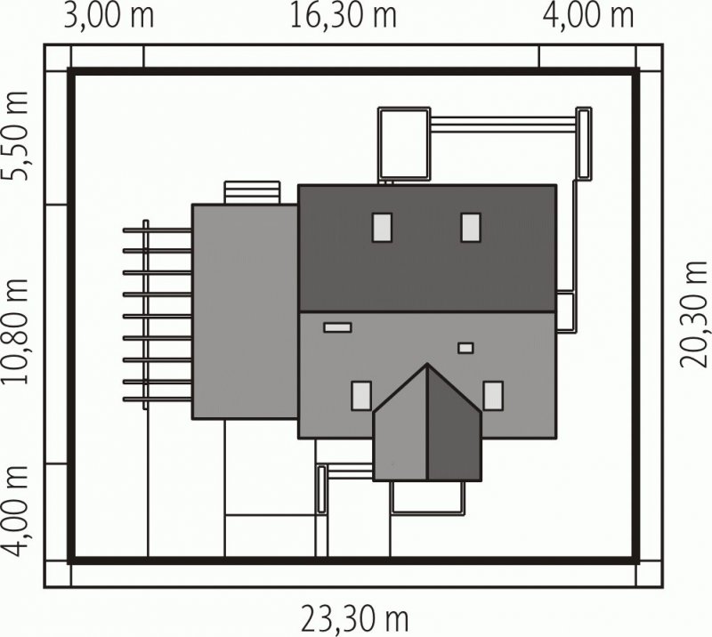 - Min. wymiary działki 23.30x20.30 m