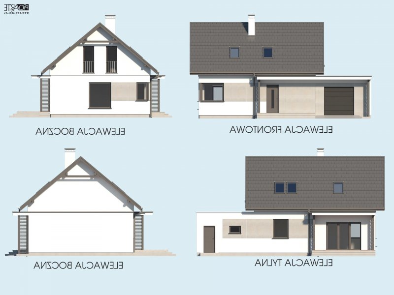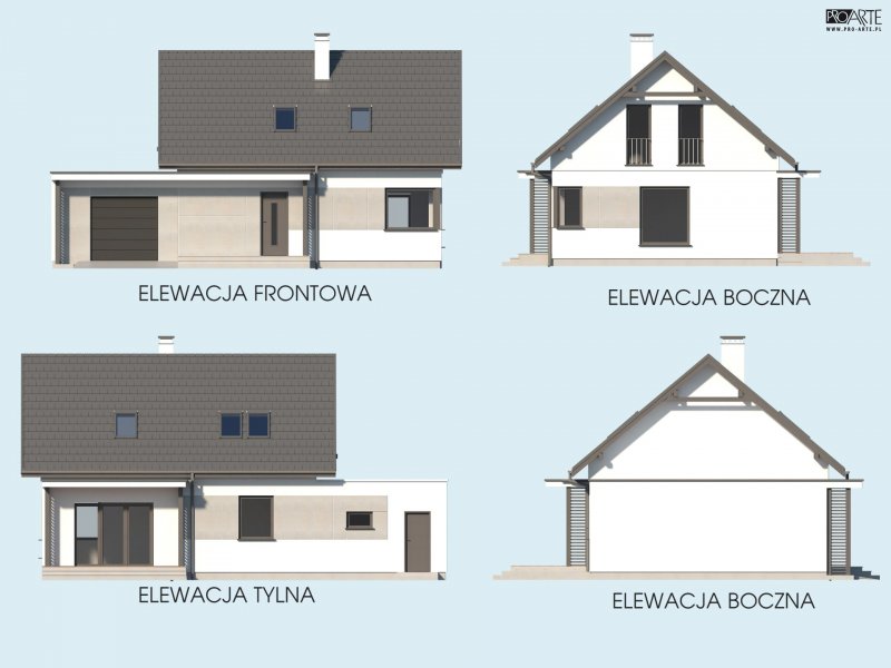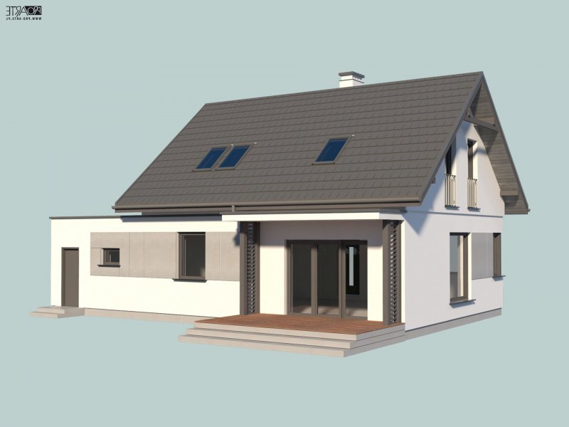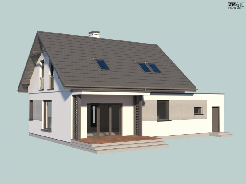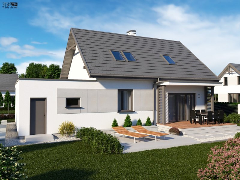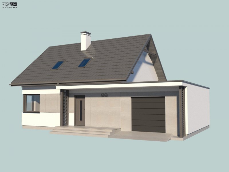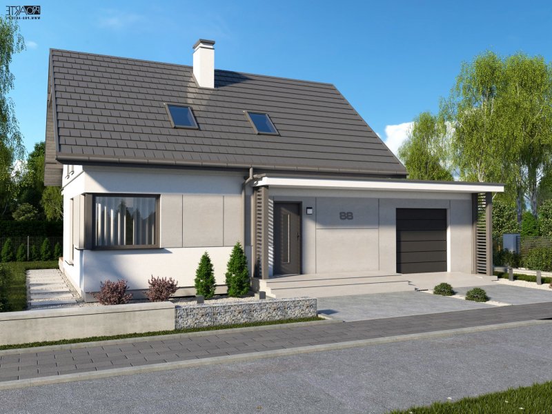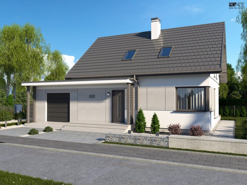 Projekt domu parterowego z poddaszem użytkowym i garażem SEVILLA 3A w technologii murowanej.
