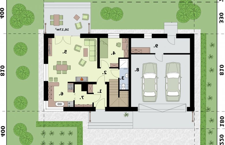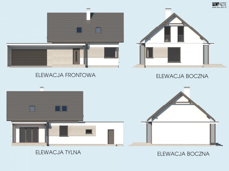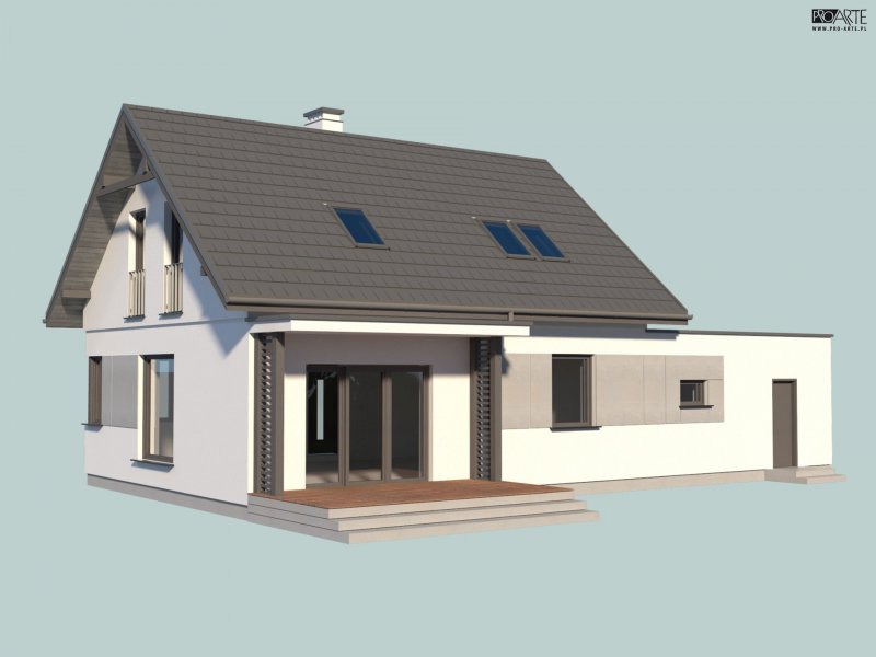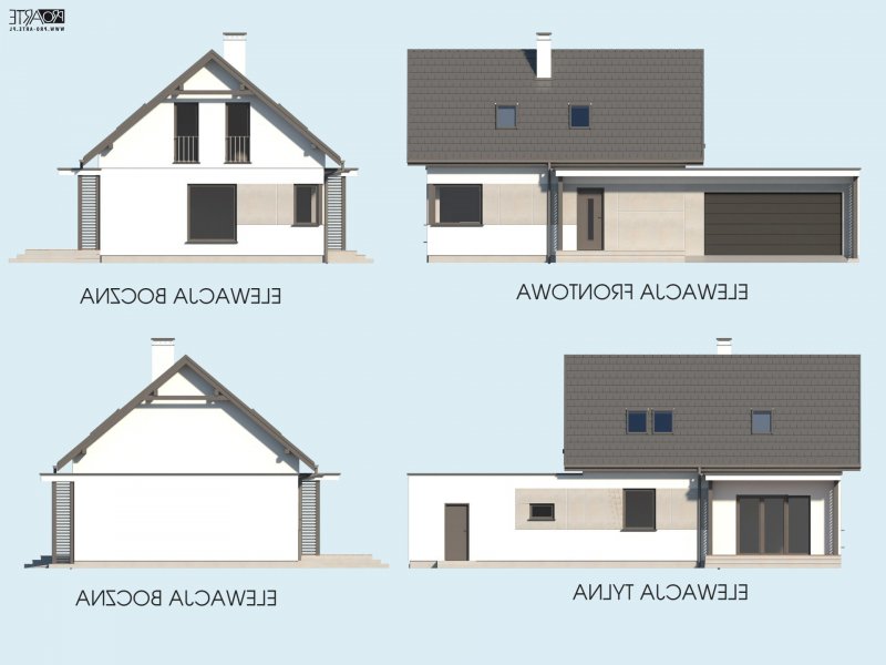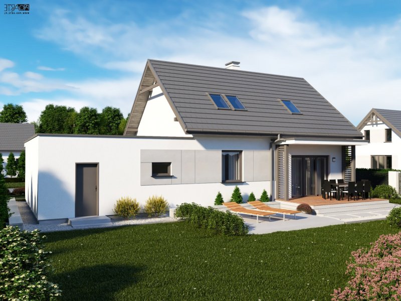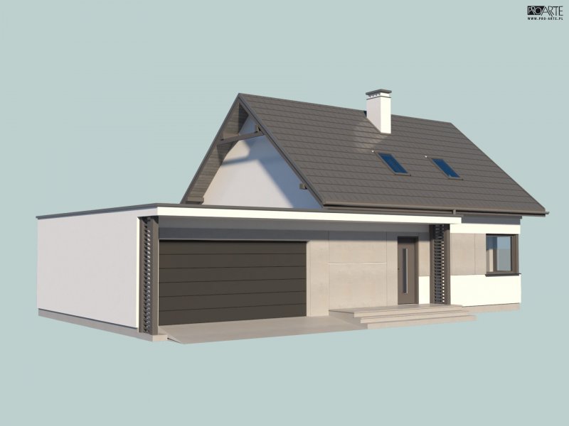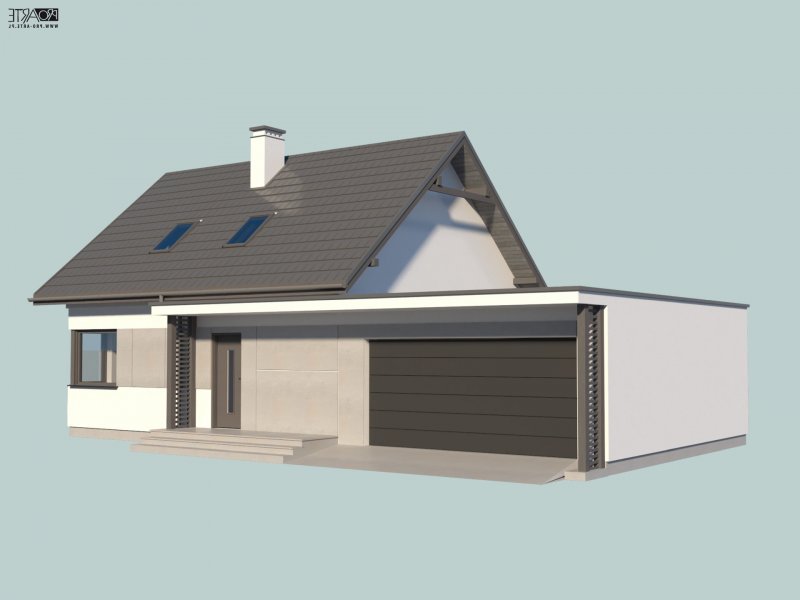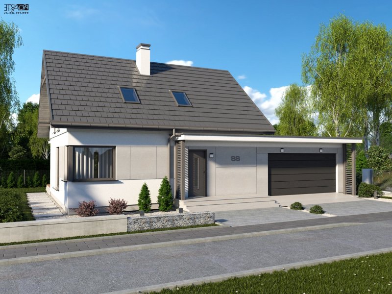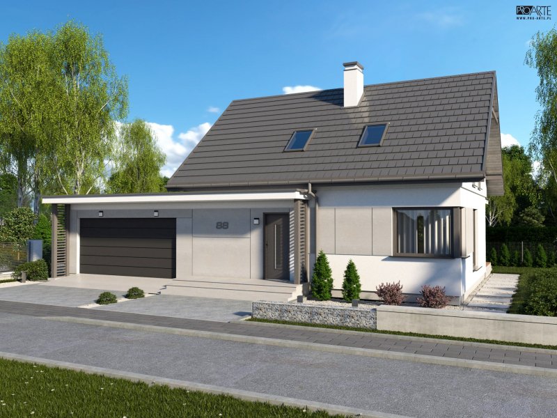 Projekt domu parterowego z poddaszem użytkowym i garażem dwustanowiskowym SEVILLA 3B w technologii murowanej.