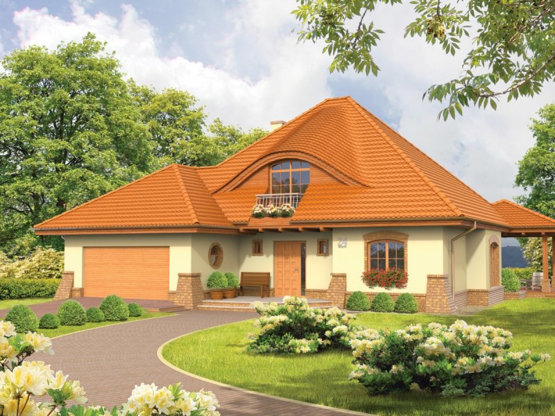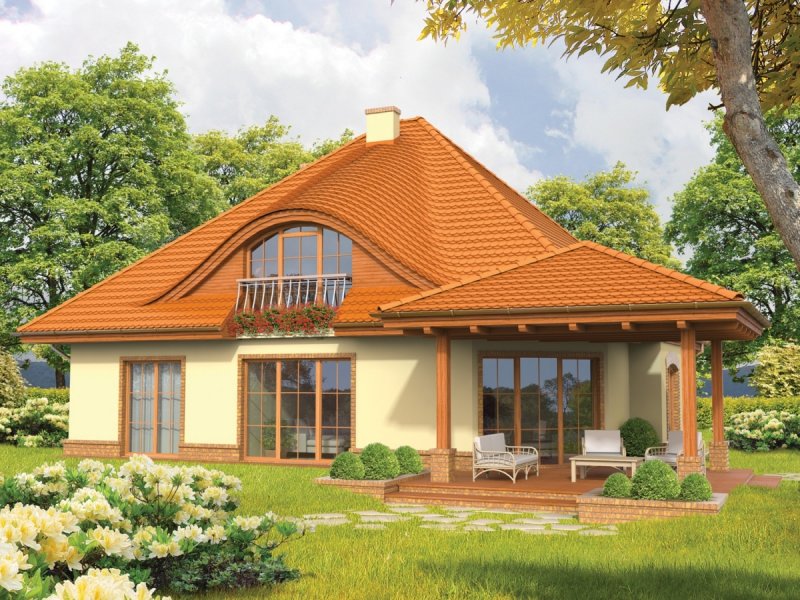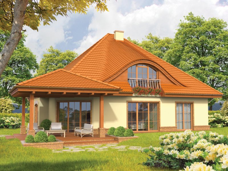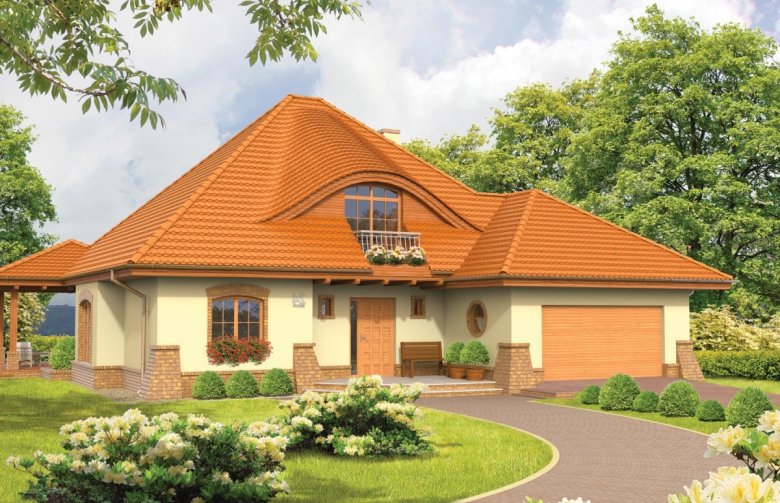 Dom parterowy z poddaszem użytkowym, niepodpiwniczony z garażem dwustanowiskowym, przeznaczony dla 4-5 osobowej rodziny. „Seweryna” posiada przestronne i funkcjonalne wnętrze. Ogromnie urokliwą strefą domu jest salon połączony z tarasem – latem przenosi domowników w klimat rozkwitającej zieleni, a zimą pozwala ogrzać domowe ognisko ciepłem płynącym z kominka. Atutem „Seweryny” jest także duża kuchnia ze spiżarnią. Na poddaszu zlokalizowano wygodną sypialnię, połączoną z osobną łazienką i garderobą. Falisty kształt dachu „Seweryny” oraz oryginalne okna dodają domowi niepowtarzalnego charakteru. Harmonijnie skomponowana kolorystyka oraz szlachetne detale sprawiają, że dom prezentuje się wytwornie i przytulnie. „Seweryna” to idealna propozycja dla wszystkich, którzy cenią elegancję i subtelny prestiż. Istnieje większa wersja tego projektu o powierzchni użytkowej 221 m².