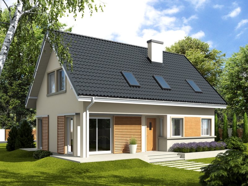 Dom parterowy z poddaszem użytkowym, niepodpiwniczony. Przeznaczony dla 3-4-osobowej rodziny. Na parterze zaprojektowano strefę dzienną: salon z kominkiem, kuchnię oraz obszerną jadalnię. Znalazła się tu również toaleta i pomieszczenie gospodarcze. Strefę nocną zlokalizowano na poddaszu. Tworzą ją trzy duże sypialnie, w tym jedna z garderobą oraz wygodna łazienka. Simona to dom, który powstał z myślą o inwestorach, ceniących komfort użytkowy i klasyczne piękno. Prosta bryła i ekonomiczny w realizacji, dwuspadowy dach doskonale komponują się z subtelnym wykończeniem elewacji. Atrakcyjnym elementem domu jest częściowo zadaszony taras, który tworzy rodzinny azyl rekreacyjny. Simona to ergonomiczne wnętrza w nowoczesnej szacie. Dom z Kolekcji Bianco Ergonomia – Ekonomia – Funkcjonalność – Czysta forma – Glamour Kolekcja Bianco Domy z Kolekcji Bianco zostały zaprojektowane z najwyższą troską o ergonomię i komfort użytkowy. W każdym projekcie z Kolekcji Bianco zminimalizowano ilość pionów instalacyjnych. Zgrupowanie w bliskim sąsiedztwie pomieszczeń, do których konieczne jest doprowadzenie wody, kanalizacji oraz systemu wentylacji pozwala ograniczyć koszty związane z wykonaniem instalacji wewnętrznych oraz dodatkowych pionów wentylacyjnych. W domach z Kolekcji Bianco strefa dzienna jest wyraźnie oddzielona od części gospodarczej i sanitarnej, co podnosi komfort użytkowy, a dodatkowo akcentuje reprezentacyjny charakter. Strefę nocną zaprojektowano z dbałością o jej intymny charakter. W Kolekcji Bianco dominuje ascetyczna wizja piękna – prosta, czysta, doskonała Istnieje możliwość: - podpiwniczenia - zbliźniaczenia - wykonania domu dwulokalowego