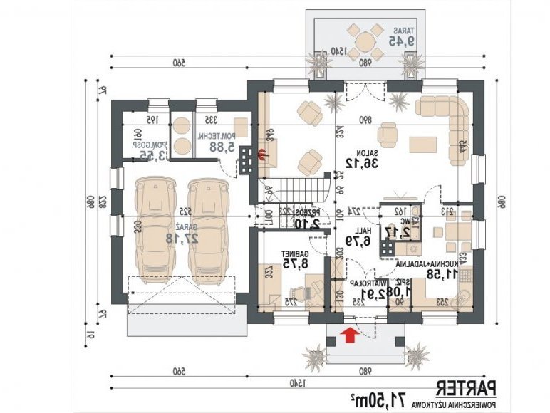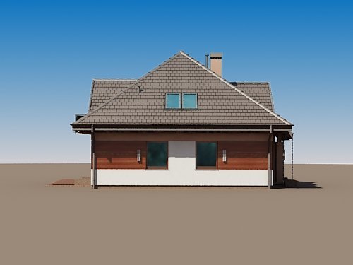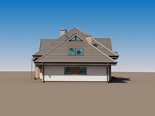 Projekt Sindbad N 2G to odświerzona i zarazem udoskonalona wersja popularnego projektu w wersji z garażem dwustanowiskowym. Wcześniejsza wersja tradycyjna spotkała się z pozytywnym odbiorem klientów. Wersji N nadano nowoczesną stylistykę i zaproponowano modną kolorystykę oraz aktualnie częściej stosowane materiały wykończenia elewacji. Pewnym korektom uległy detale balustrad oraz podziały okien, czy drzwi. Sugerując się zdaniem klientów w tej wersji wprowadzono pewne korzystne zmiany w układzie funkcjonalnym parteru. Aktualnie znajduje się tutaj wydzielona kuchnia z aneksem jadalnym i spiżarnią, przestronny salon z kominkiem, gabinet mogący pełnić funkcję sypialni, wiatrołap, hol oraz powiększona łazienka (wcześniej tylko wc). Część garażowa projektu zawiera w sobie także kotłownię i pomieszczenie gospodarcze. W projekcie zastosowano schody żelbetowe prowadzące na poddasze, gdzie znajdziemy dwie sypialnie ze wspólną garderobą oraz trzecią sypialnię z osobną łazienką i garderobą a także łazienkę ogólnodostępną z wydzieloną pralnią oraz wc.
