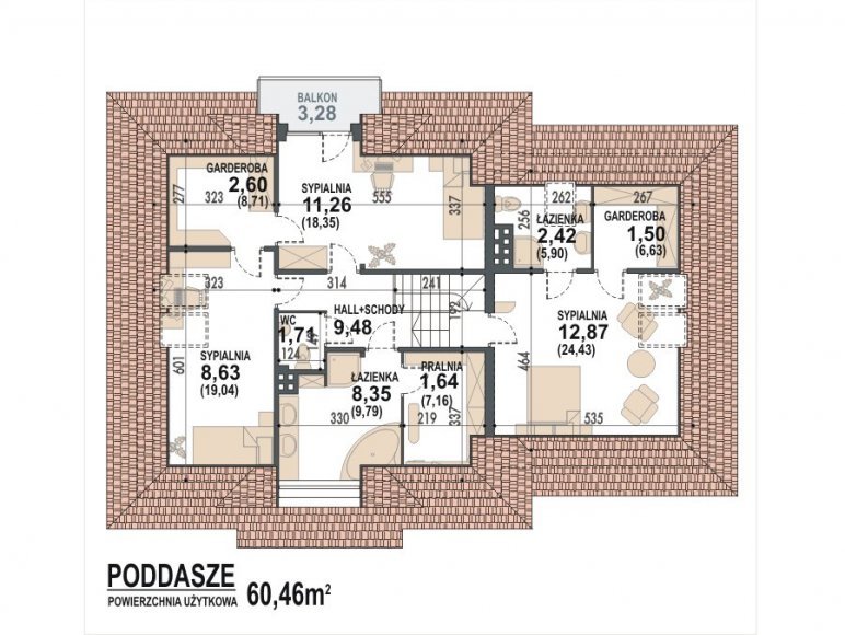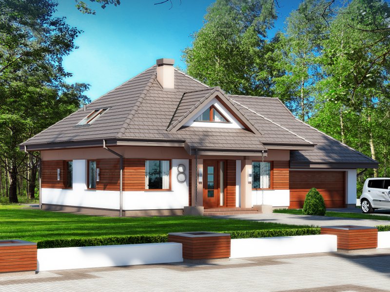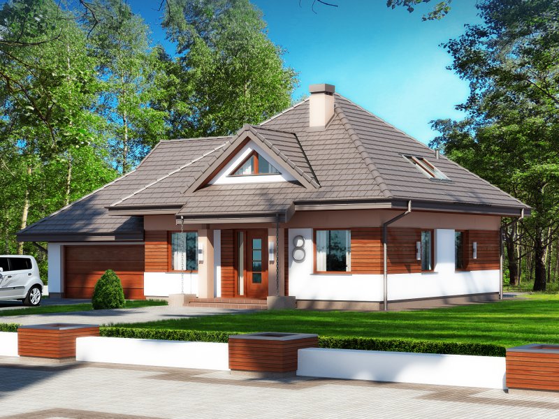 dach: czterospadowy o konstrukcji drewnianej z pokryciem z dachówki ceramicznej, cementowej lub blachodachówki
