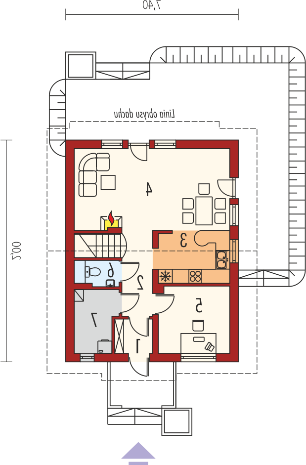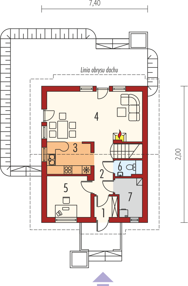 - Kąt nachylenia dachu 45.00°