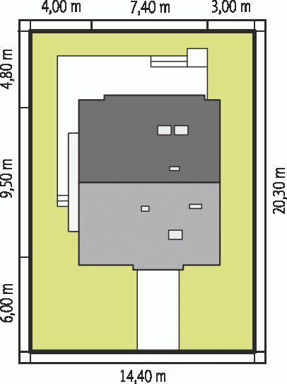 - Min. wymiary działki 14.40x20.30 m